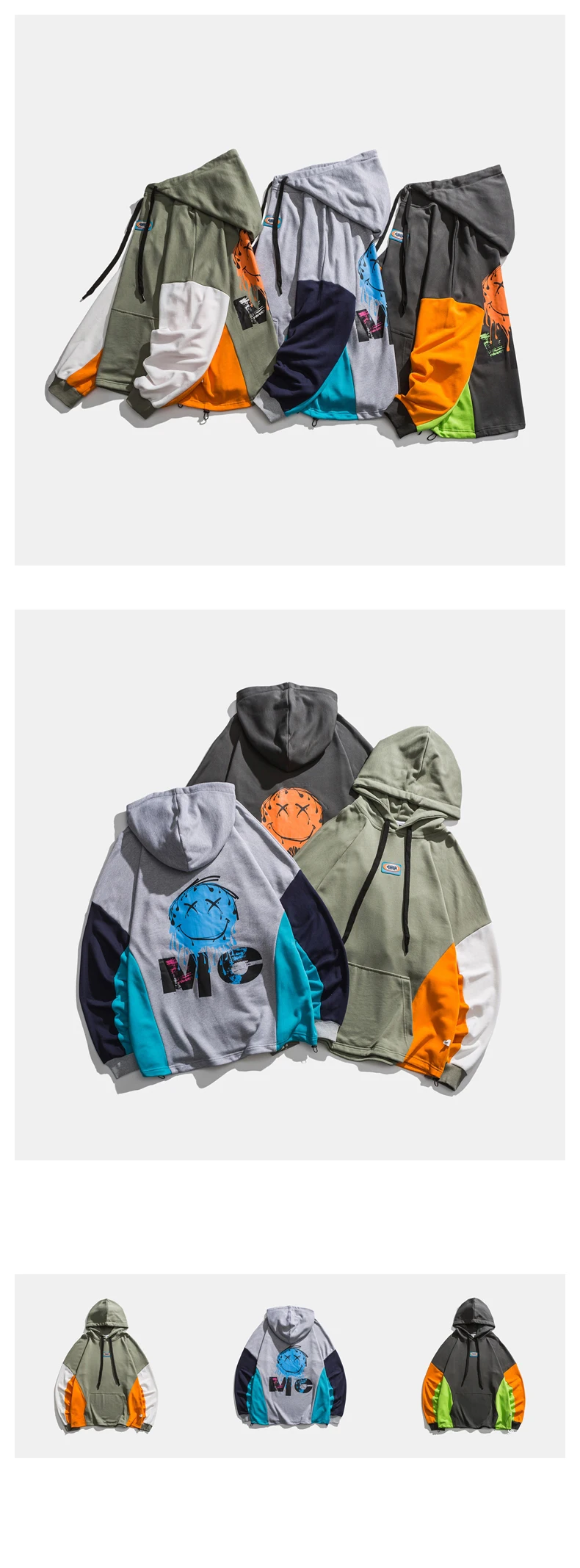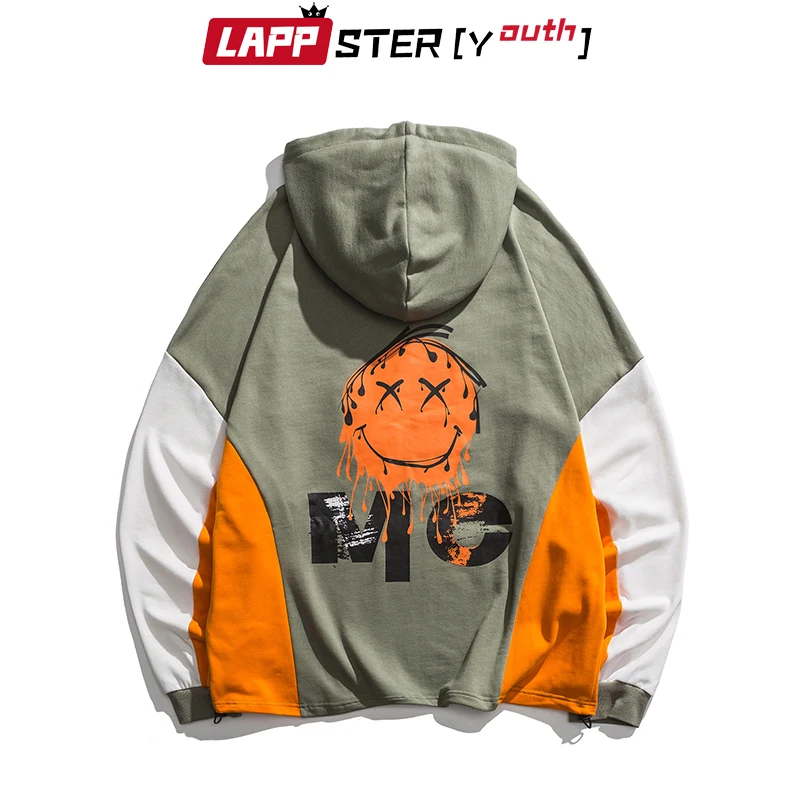Толстовка LAPPSTER-Youth мужская с капюшоном и смайликом, дизайнерская уличная одежда в стиле пэчворк, большие размеры, Y2k Kpop, 2022