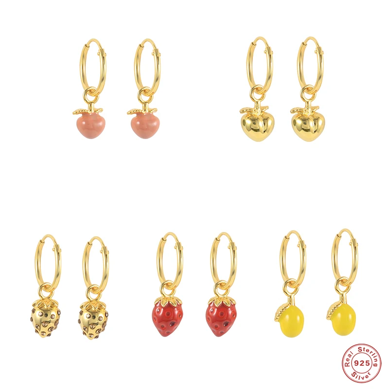 925 стерлингового серебра фруктовая коллекция серьги в виде капель с Горячая эмаль лимон, клубника очарование кулон длинные висячие серьги для женщин летние ювелирные изделия