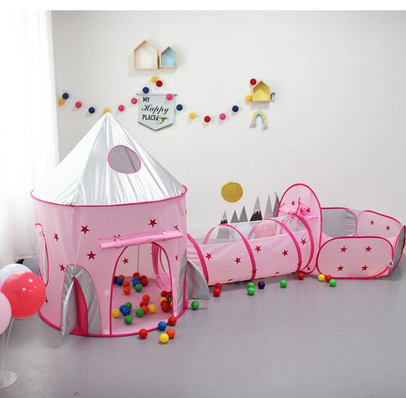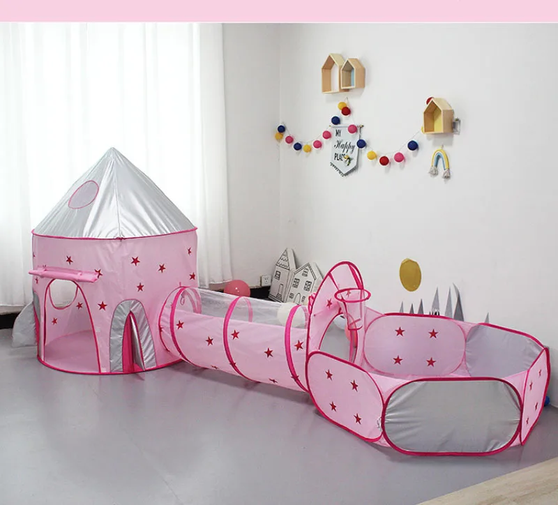 Детский туннель, космический корабль, 3 в 1, палатка, домик, игрушки для игр, складные, детские, для ползания, портативный бассейн, маленькие домики для девочек и мальчиков