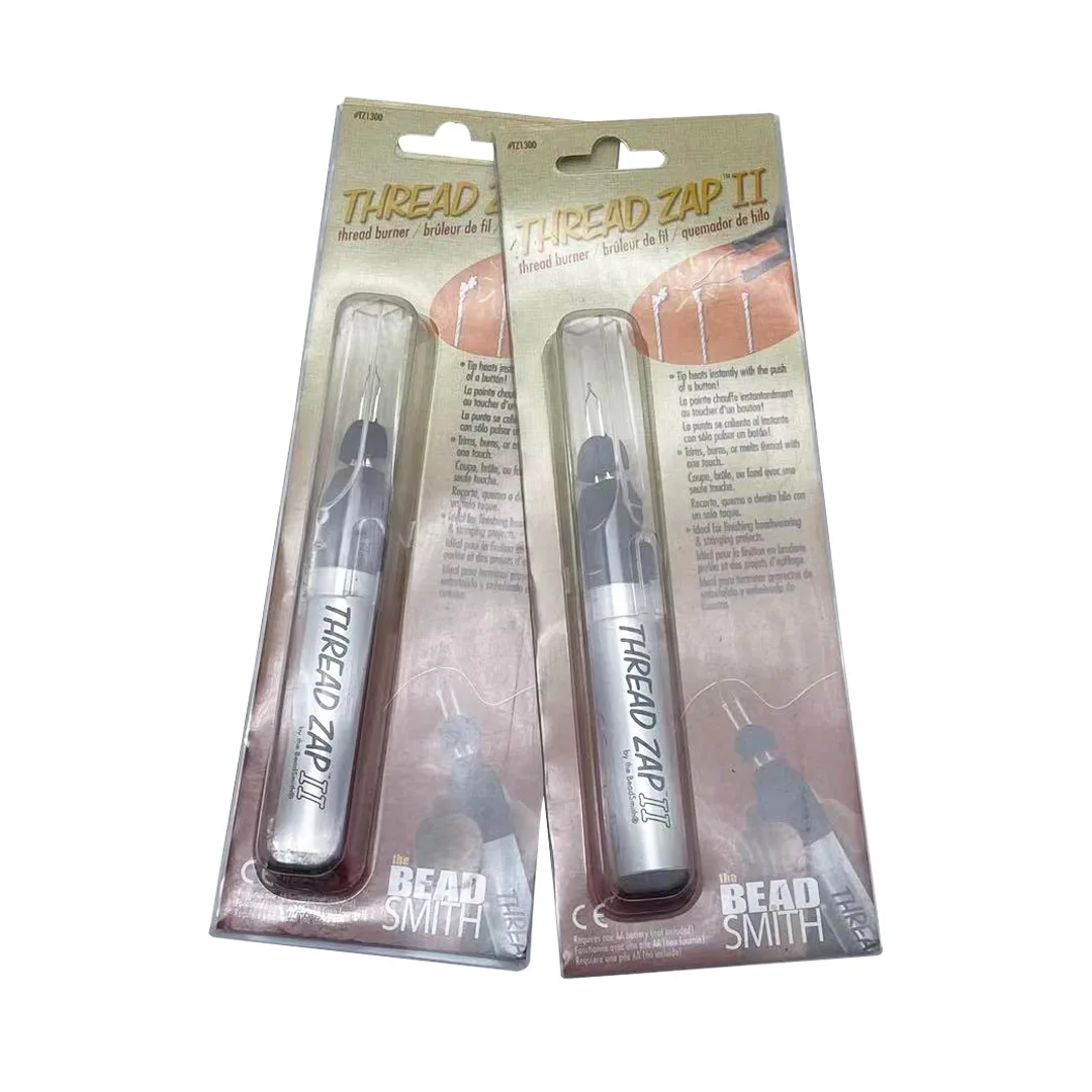 Для использования резьбы Zap II:Просто нажмите и удерживайте черную кнопку, расположенную сбоку, чтобы активировать нагревательный элемент на кончике. Обычно вы увидите небольшое просвечивание дыма, указывающее, что наконечник достаточно горячий для использования. Продолжая удерживать кнопку, коротко прикоснитесь к кончику на том месте, где вы хотите разрезать, расплавить или сжечь его. Как только вы достигнете желаемого результата, позвольте несколько секунд, чтобы нить остыла, прежде чем прикоснуться к любым бусинам в этой области. Замените прозрачную крышку над нагревательным элементом.Не храните без покрытия на месте.