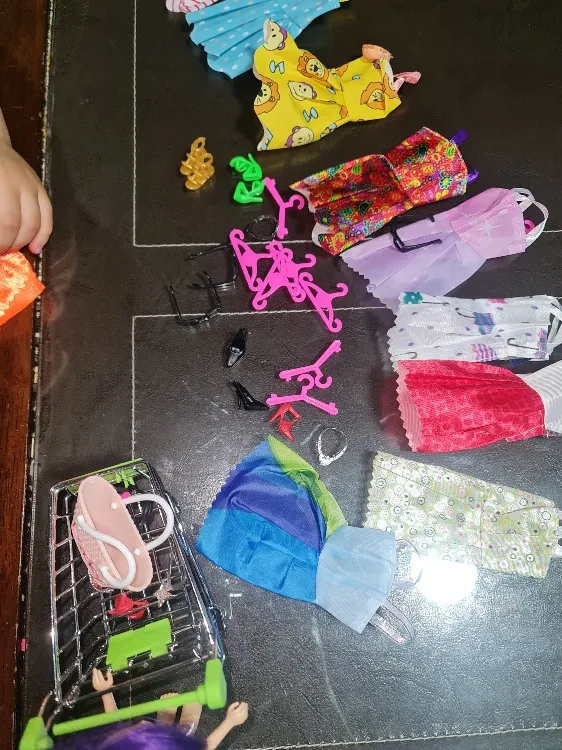 Ребёнок расстроился. Сейчас такие деньги только половина набора. Из 12 пар обуви только 5, из них 2 пары малы! Из 8 сумок только 2 ! Короны и бусы тоже по 2 штуки. Ужас, требую возврата половины суммы. Безответственный продавец. Не рекомендую!