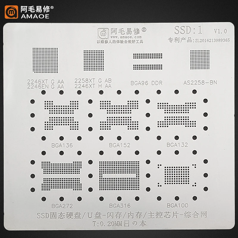 Трафарет 0,20 мм BGA SSD DDR память BGA152 BGA132 BGA316 трафарет для реболлинга для U-диска и ремонта фотовспышки