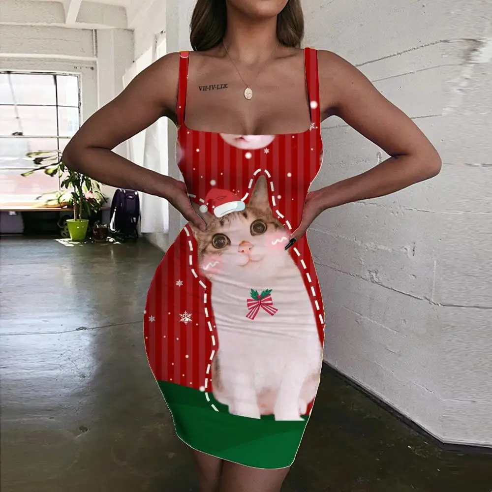 Женские рождественские платья KYKU, новогодние платья с 3d принтом ...