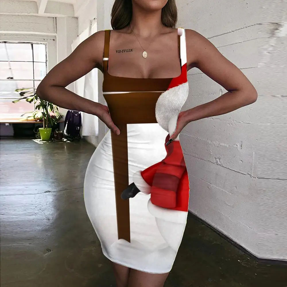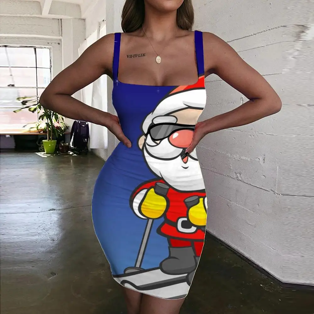 Рождественское платье KYKU, женский сарафан с Санта-Клаусом, облегающее платье с Луной, Женская Вечерние, новая пляжная женская одежда