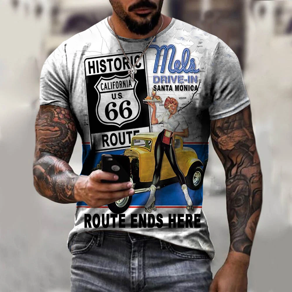 66 футболка в американском стиле дороги, спортивная одежда с 3d при...