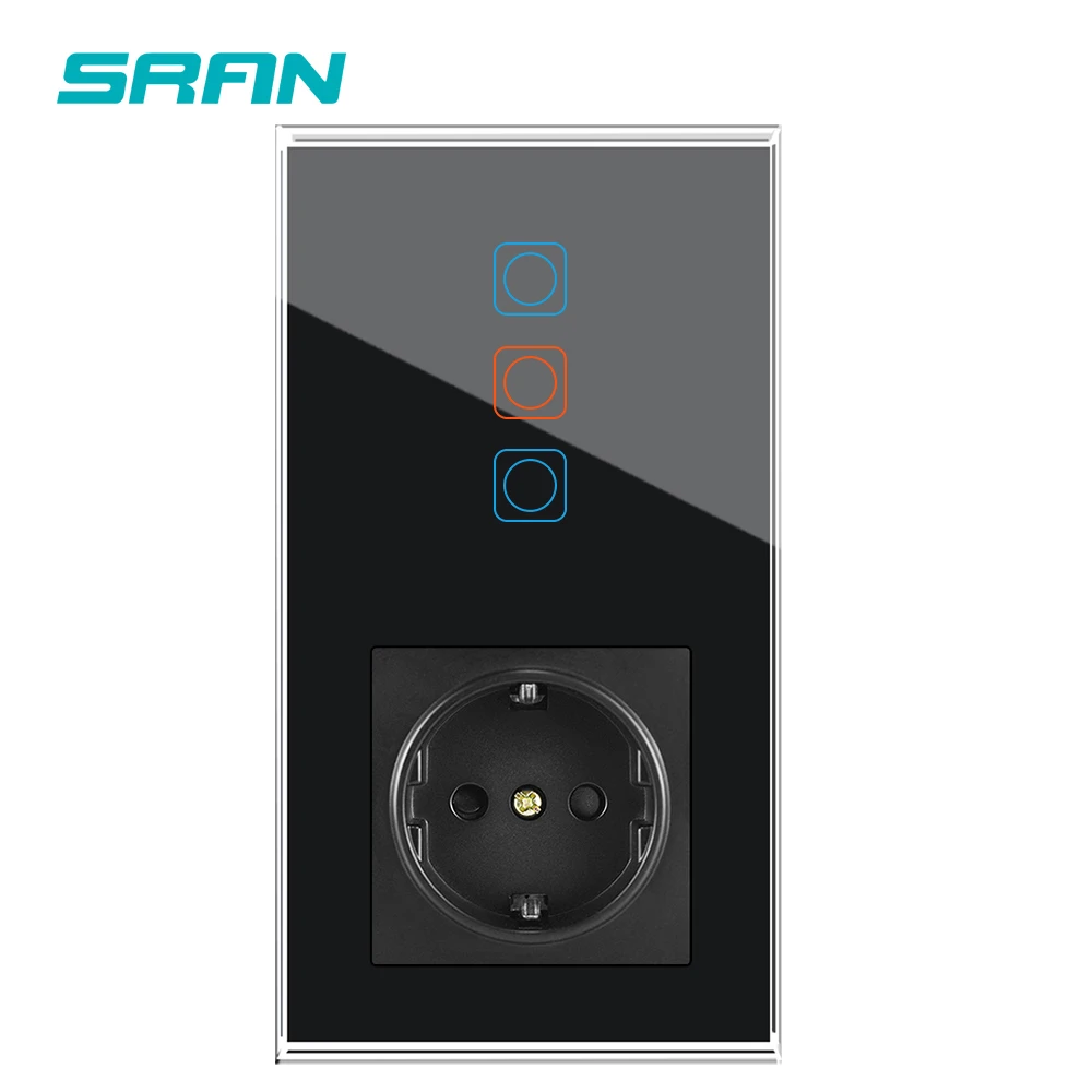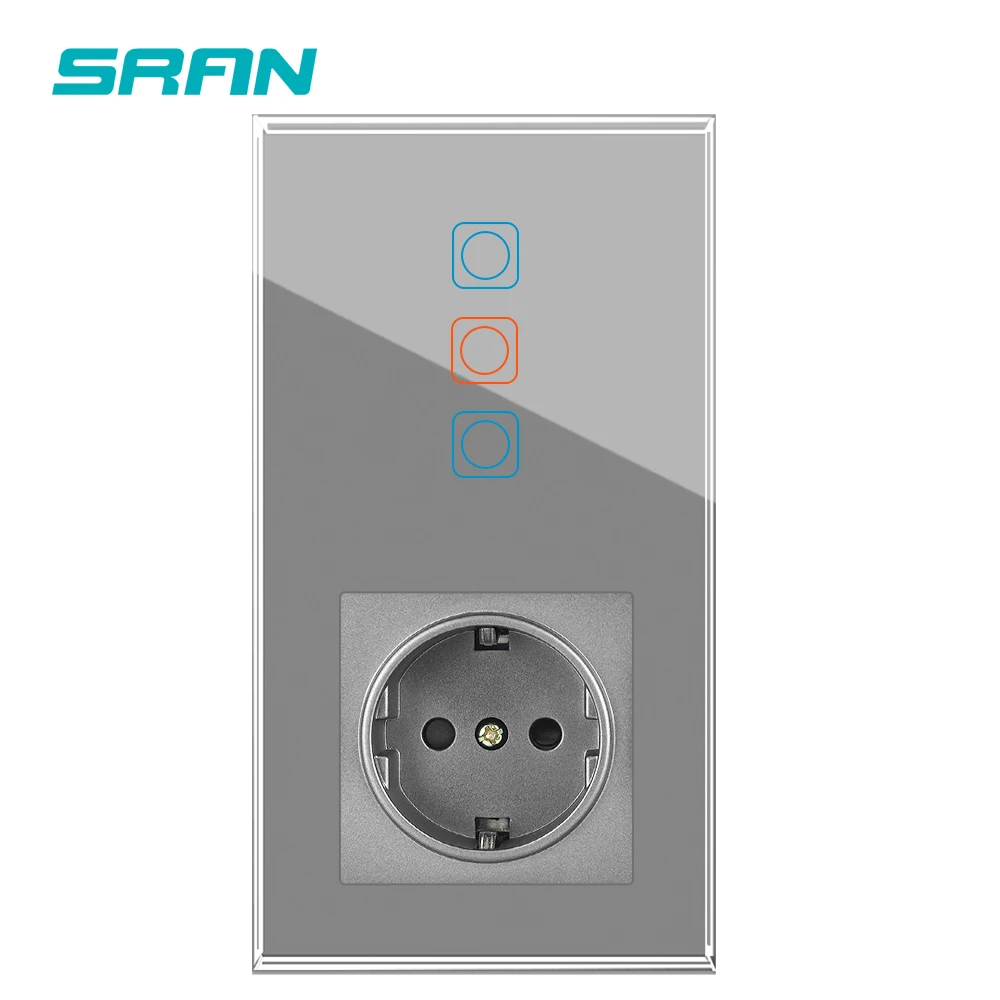 Сенсорный выключатель SRAN, розетка светильник ключателем света, 3 комплекта, 1 канал, вертикальная установка, Хрустальная стеклянная панель, 153 мм х 82 мм