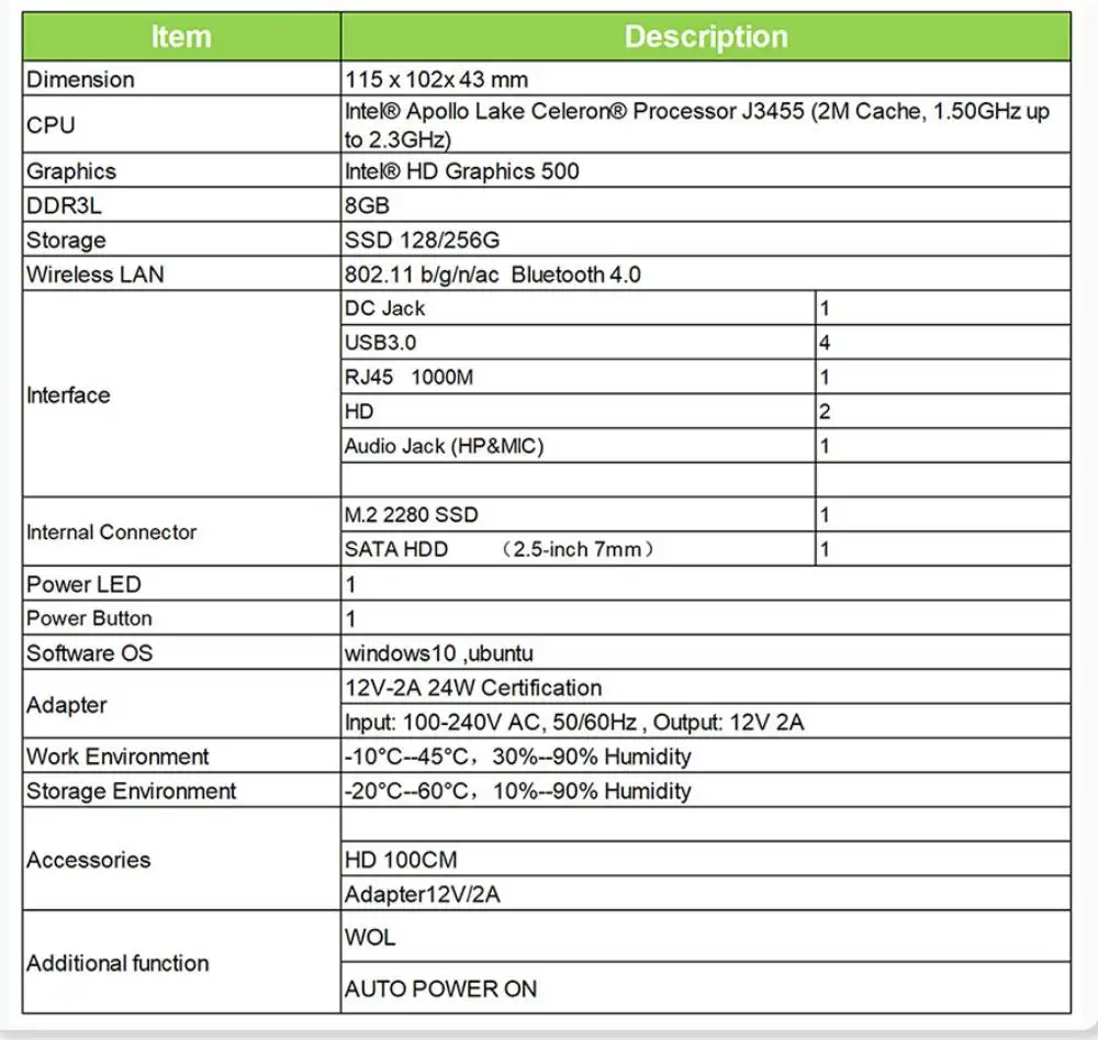 Модель процессораIntel Applo Lake Celeron J3455(2M Cache, 1.5GHz up to 2.3GHz)