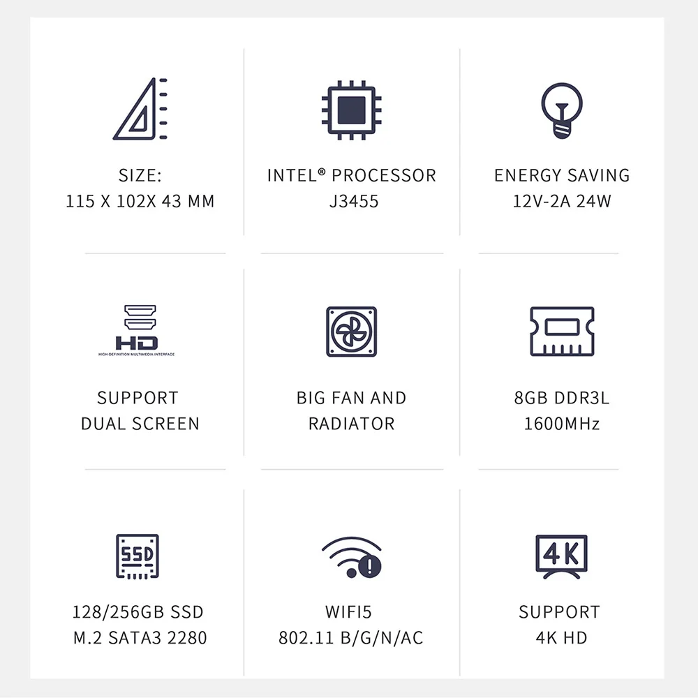 Мини-ПК Beelink Windows 10, Intel Apollo Lake Celeron J3455 8 ГБ ОЗУ 128 ГБ 256 ГБ SSD 2,4G и 5,8G Двойной Wi-Fi BT 1000M LAN