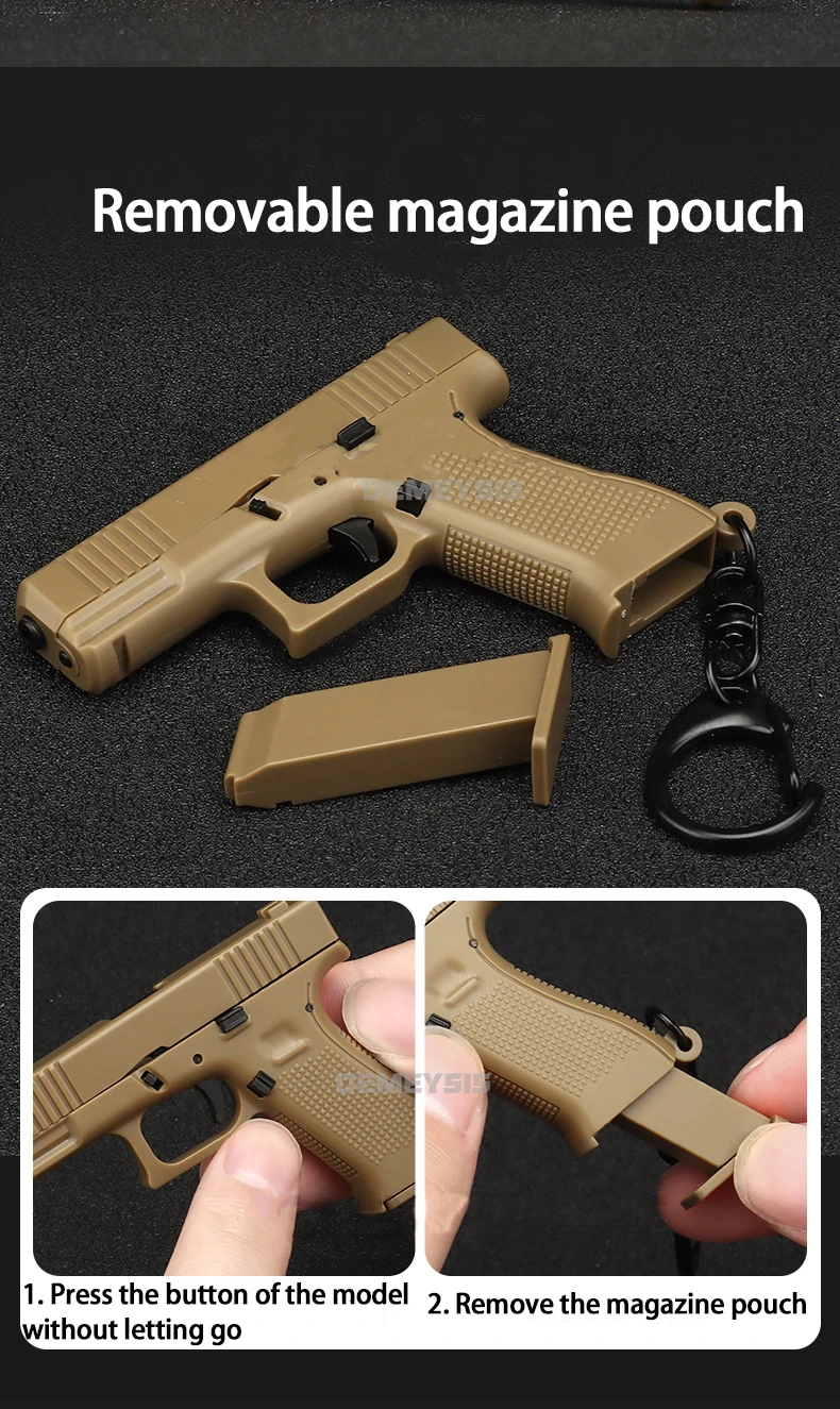 Тактический походный брелок в форме пистолета, мини портативные украшения, съемное кольцо для ключей, аксессуары для охотничьего ружья, держатель для ключей Характеристики продукта:Название: Мини Тактический брелок в форме пистолетаТипы: G45 брелок-пистолетМатериал: инженерный пластикЦвета: черный/светло-коричневый/розовый/белыйВес: около 0,015 кгРазмеры: 6,5*4,5*1 см Особенности:1. Изготовлен из инженерного пластика, более прочный и износостойкий.2. Съемный журнал, легко разбирается.3. Реалистичная модель, портативная и легкая. Посылка: 1 * брелок-пистолет