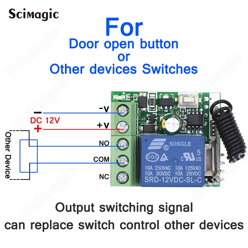+ V : 12V + вход;-В: 12V-вход;НЕТ: выход, нормально открытый;COM: выход, общий;NC: выход, нормальное закрытие.