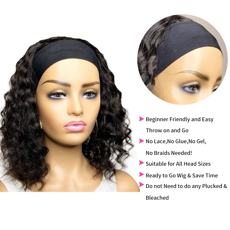 Искусственный шарф, безклеевой парик с глубокой волной, короткий боб для черных женщин, незаменяемые парики из человеческих волос бразильской кутикулы с водной волной