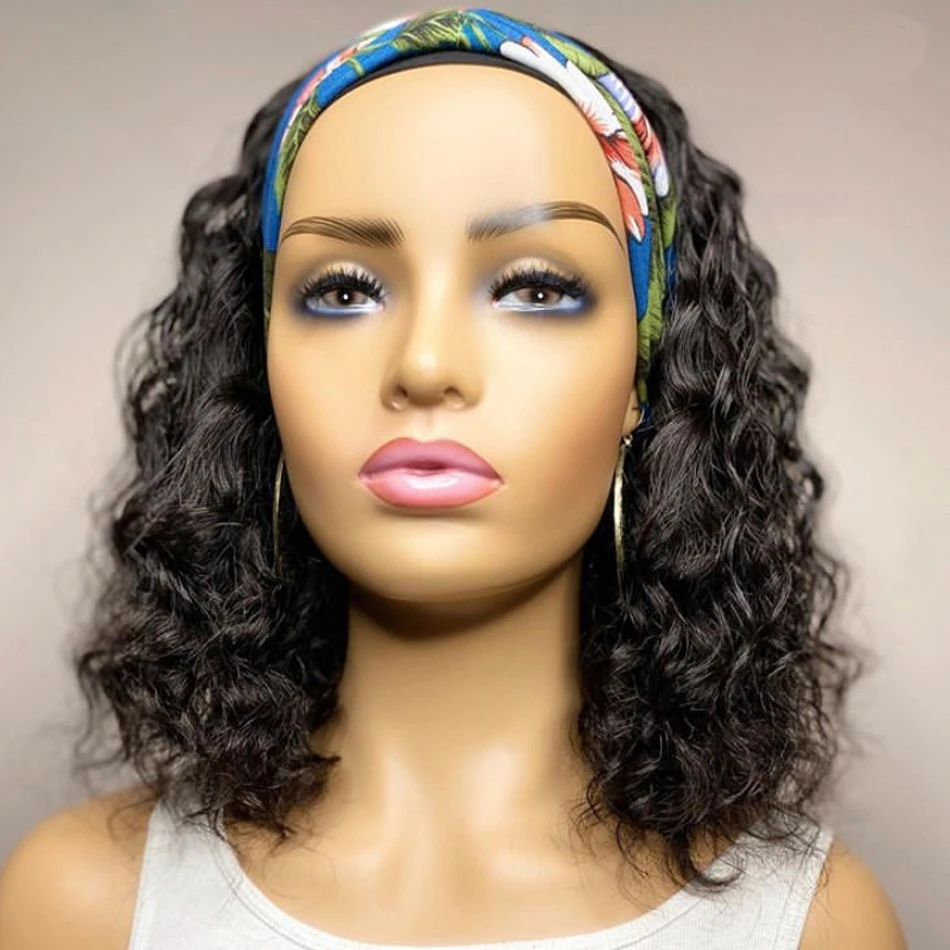Афро Курчавые Кудрявые парик с головной повязкой человеческие волос...