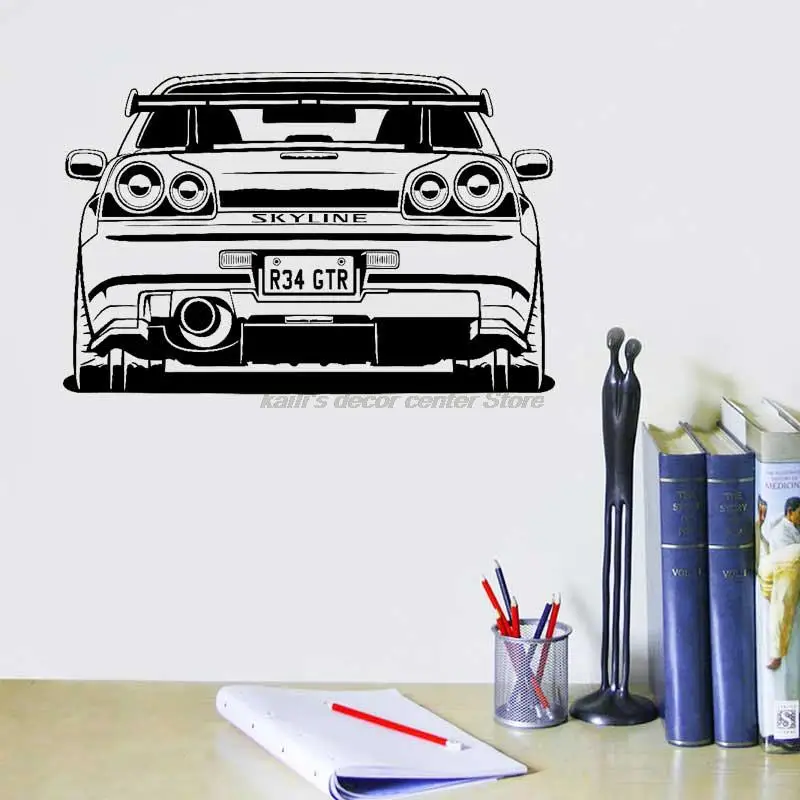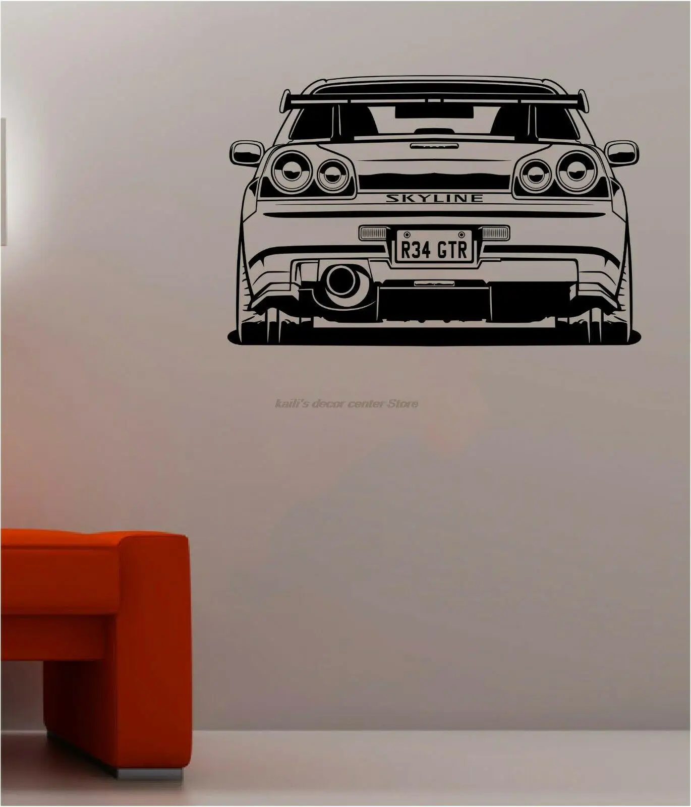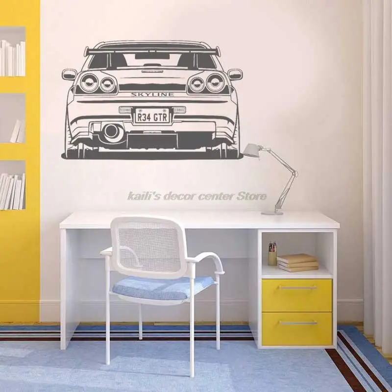Виниловая наклейка на стену Nissan Skyline GTR R34, настенная наклейка, наклейка с изображением подростка, спортивный автомобиль, для влюбленных, дома, спальни, настенная наклейка 42