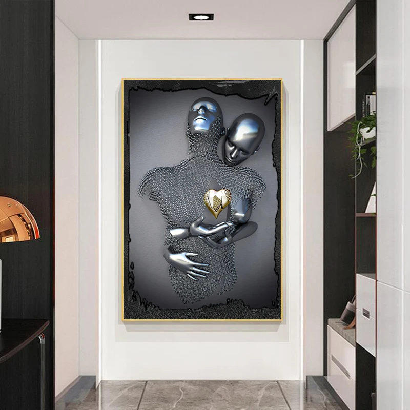 Современная любовь сердце металлическая скульптура Искусство Холст Живопись романтическая статуя плакаты и принты Настенная картина для декора гостиной