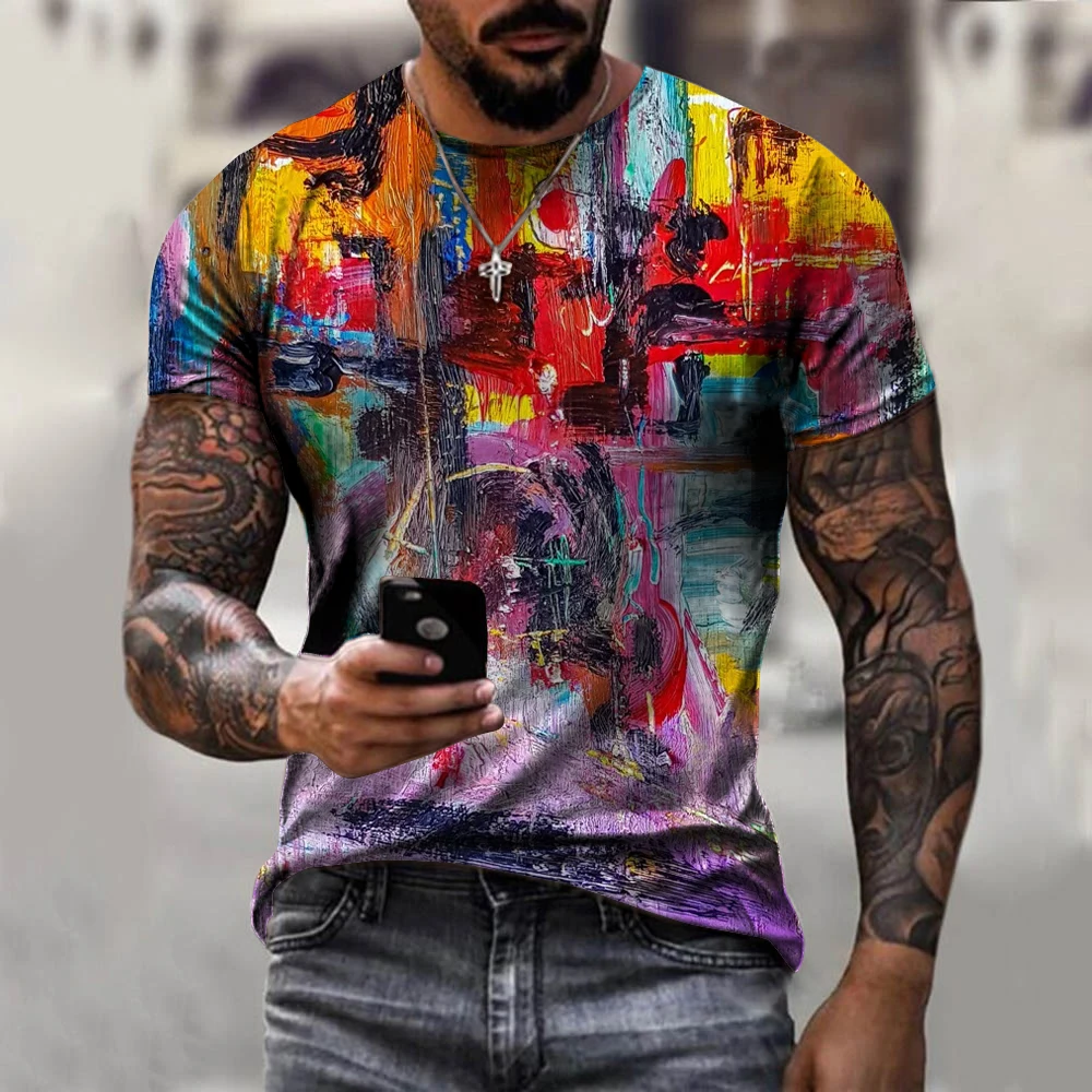 Мужская футболка с коротким рукавом, круглым вырезом и 3D-принтом