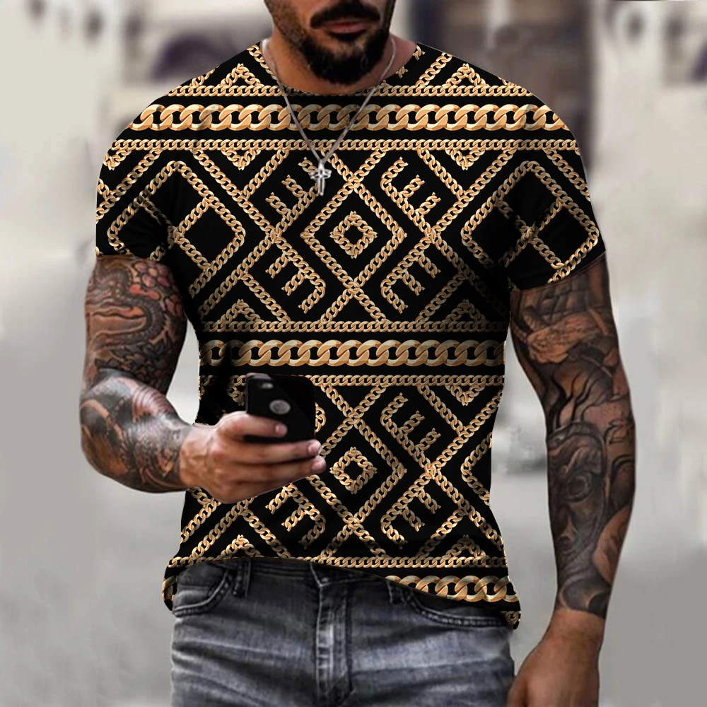 Мужская Ретро футболка с разрезом и 3D-принтом, футболка с круглым ...