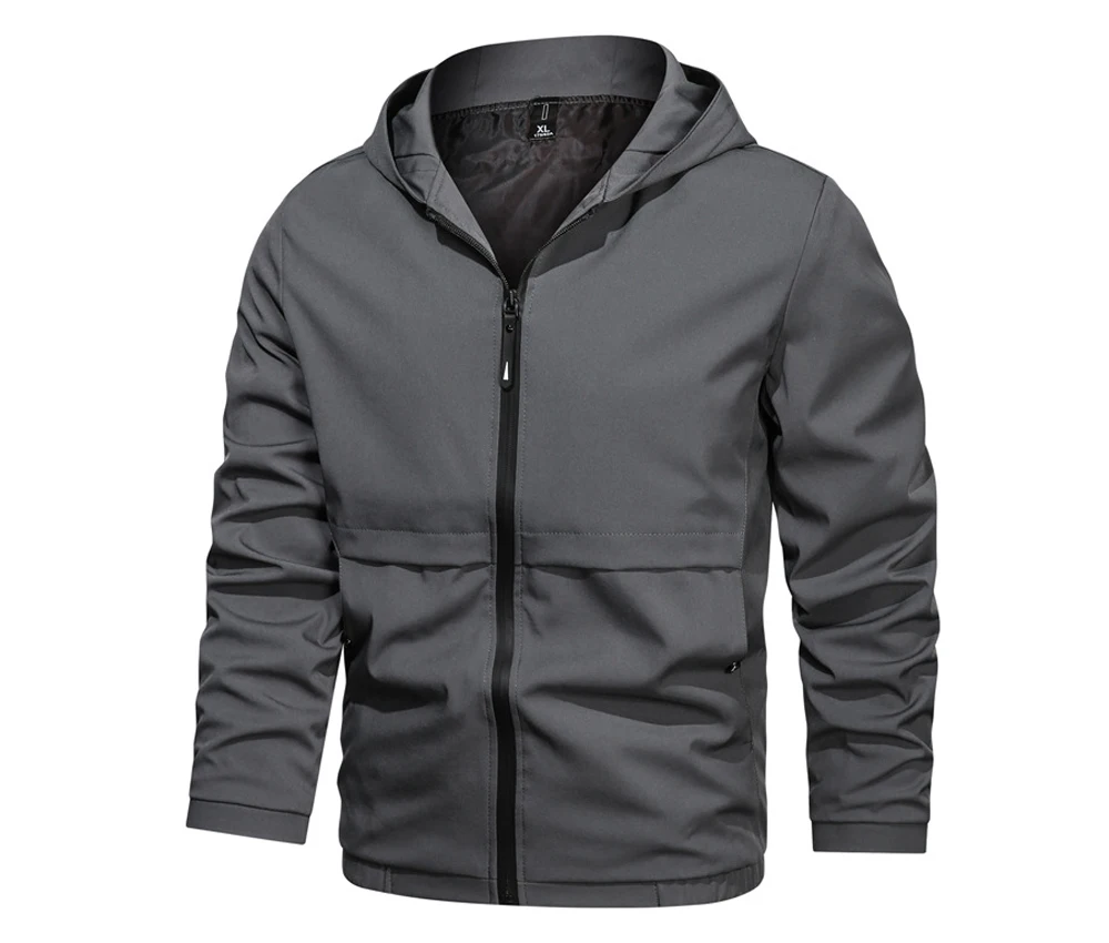 Куртка мужская однотонная на молнии, тактическая ветровка с капюшон...