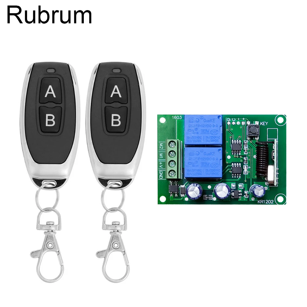 Беспроводной пульт дистанционного управления Rubrum 433 МГц, 12 В постоянного тока, 2-канальный модуль релейного приемника RF + РЧ передатчик 433 МГц, комплект дистанционного управления