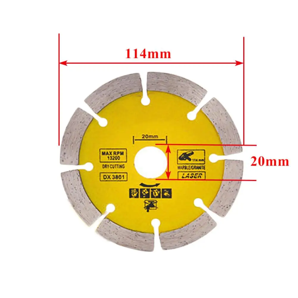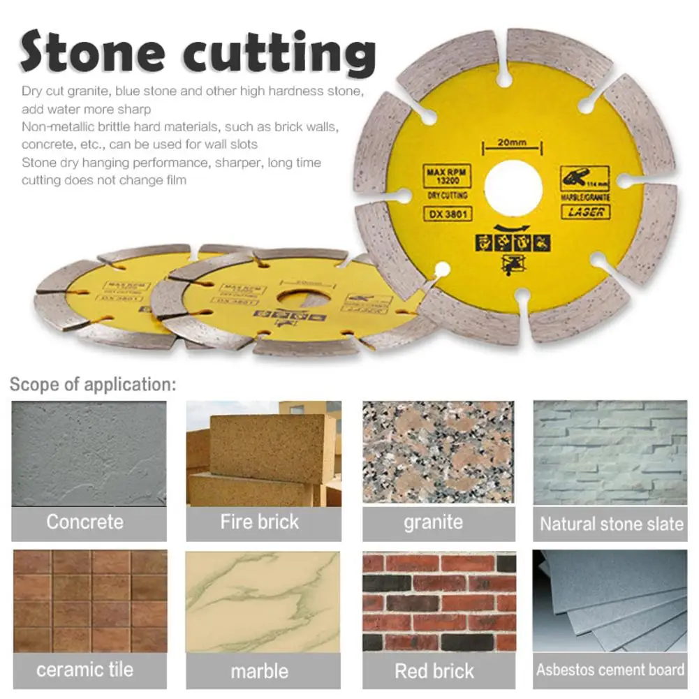 1. Материал: бриллиант;2. Размер: около 110 мм/4,49 дюйма, внутренний диаметр: 20 мм/0,79 дюйма;3. Применимый объем: мраморная резка, резка камня, аксессуары для углового шлифовального станка;Упаковочный лист:Диск для резки камня * 1