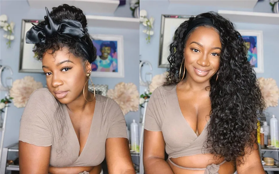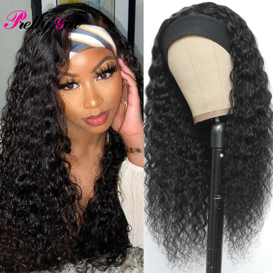Бразильские волнистые парик с головной повязкой человеческие волосы...