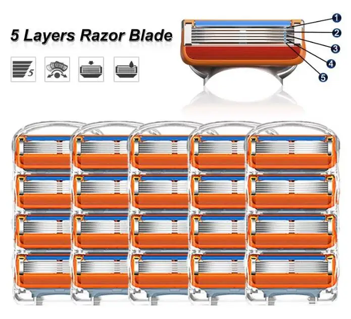 Безопасные бритвенные лезвия, 5-слойные сменные головки для Gillette Fusion5 Proglide Proshield, прямые заправки