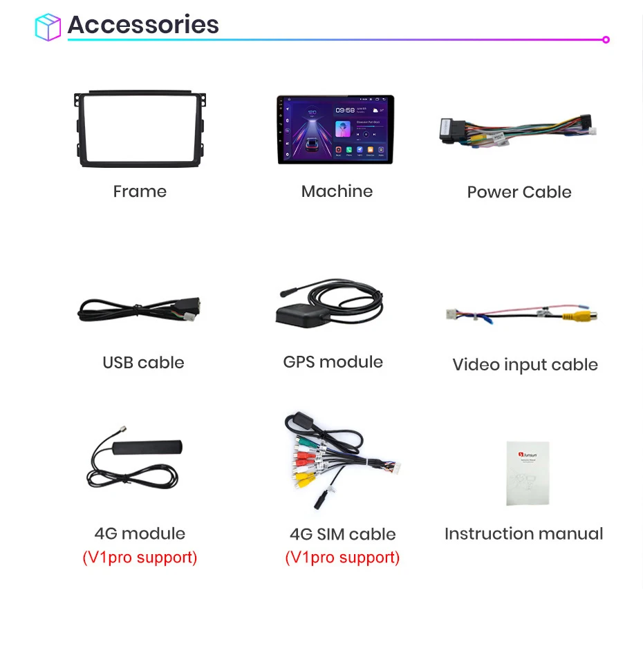 > Основные функции: Android 10,0 + 9 дюймов IPS Экран + 4 ядра 1,2 ГГц (восемь ядер 1,8 ГГц Dual Core опция) + DDR3 1 ГБ флэш-памяти (2 ГБ/4 Гб опционально) + 16 Гб памяти (32 ГБ/64 Гб опционально) + WIFI (4G сеть опционально) + Зеркальное соединение + управление рулевым колесом + RDS/DSP (опционально) + управление рулевым колесом> Специальные функции:1. Штифт-штифт: Кабель питания Junsun radio' является штифтом для штифта, прост в установке;2. Встроенный Carplay/ Android авто: версия V1/V1Pro поддерживает, просто используйте кабель для подключения телефона, стабильный и простой в использовании;3. Поддержка подголовника: только поддержка версии Junsun V1;Дополнительные аксессуары> Голосовое управление AI: только Junsun поддерживает PRO версию, просто скажите, что командное слово контролирует радио без рук, делает привод более безопасным;> ADAS DVR, контроль давления в шинах, OBD2, внешний микрофон, кабель RCA; > OSD язык русский, английский, испанский, итальянский, французский, чешский, арабский, немецкий, иврит, китайский, эстонский, польский, филиппинский, финский, корейский, голландский, хорватский, латышский,