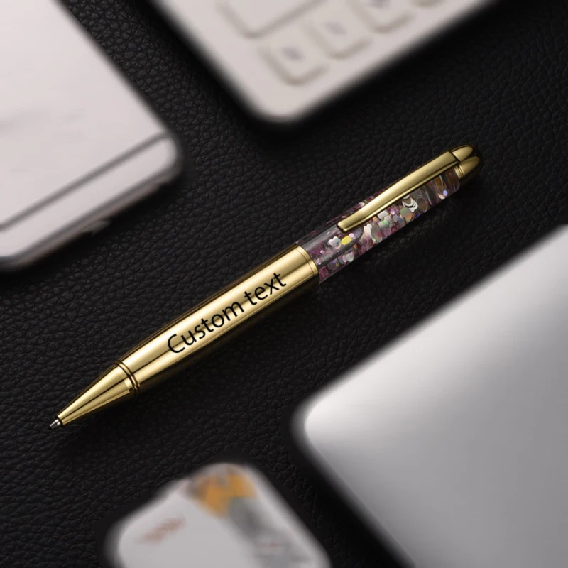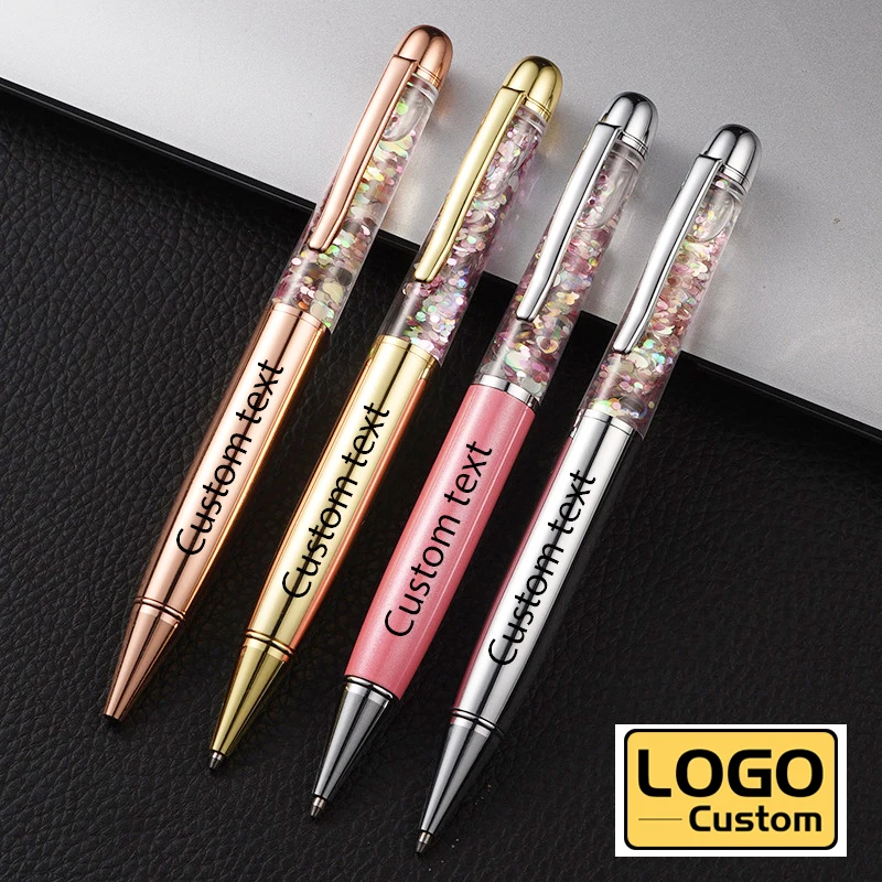 Вращающаяся металлическая шариковая ручка с индивидуальным логотипом, ручка с блестками, ручка для письма, офисные принадлежности, милая фоторучка, подарок на праздник, оптовая продажа