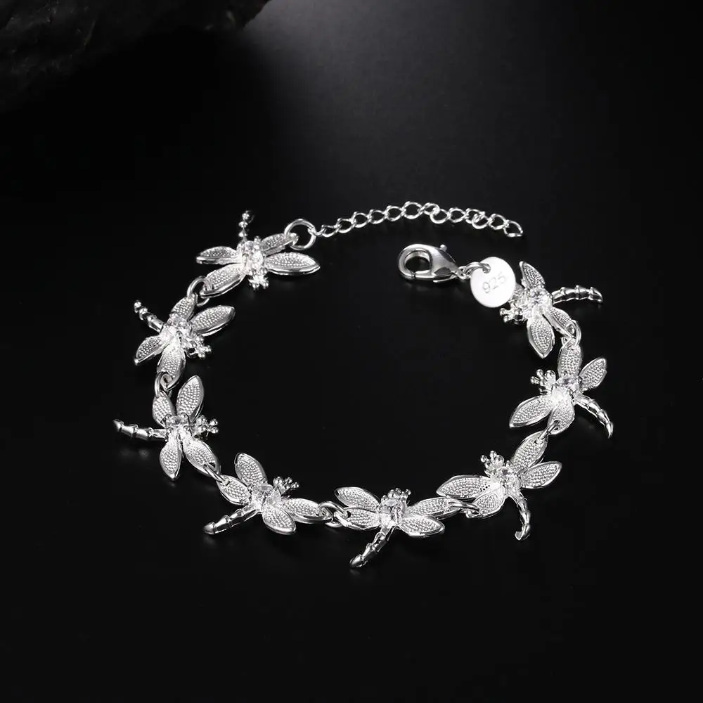 Модный браслет из стерлингового серебра 925 пробы с восемью стрекоз...