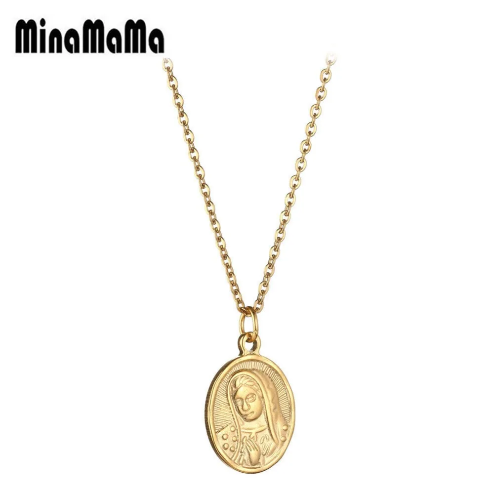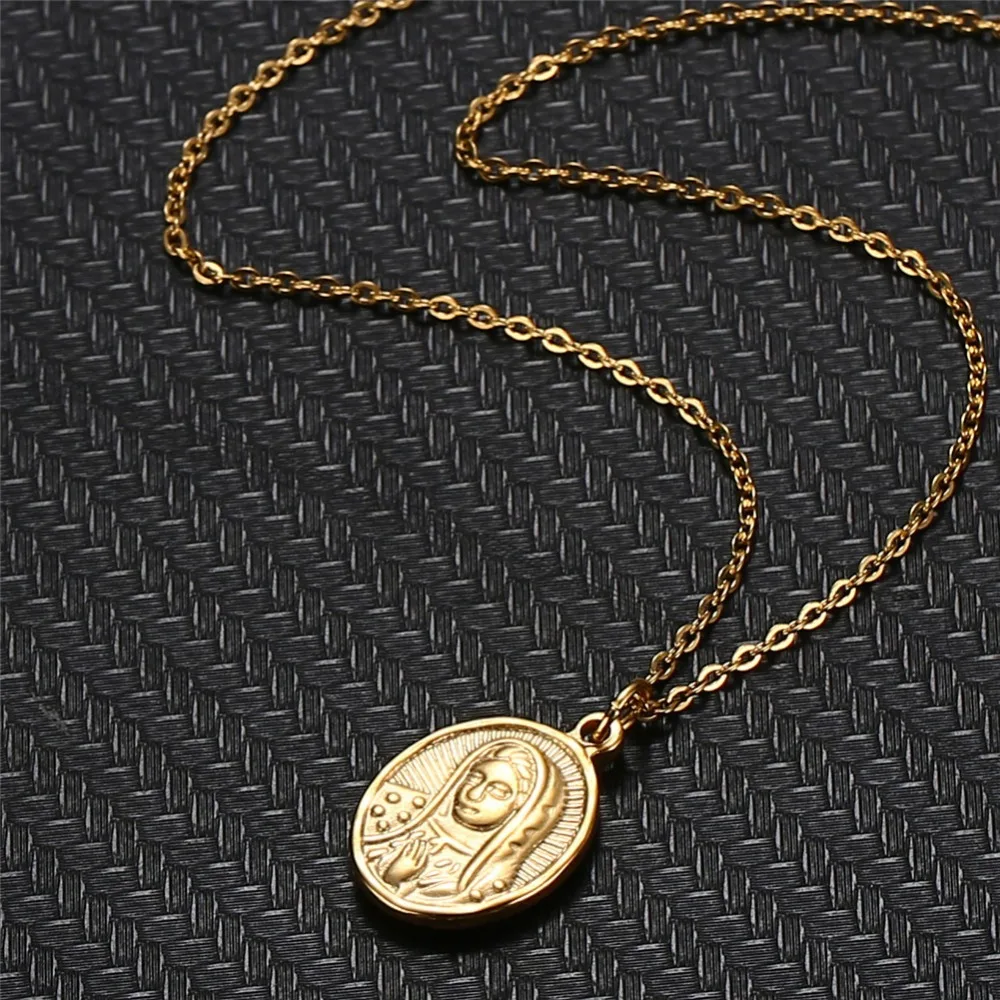 Модная христианская овальная форма Девы Марии ожерелье из нержавеющей стали Девы Марии ожерелье для женщины католические украшения