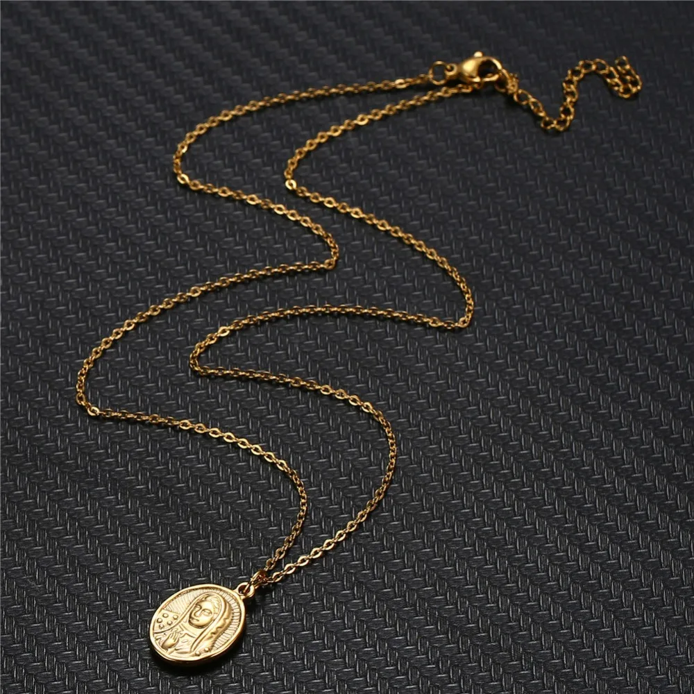 DesginStainless Steel Catholic Virgin Pendant Necklace