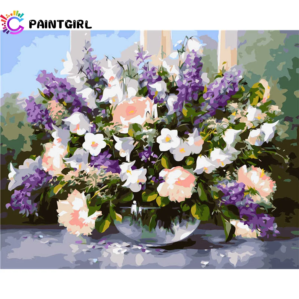VA-2533 картина маслом по номерам, цветы и женщины, DIY Краска по н...