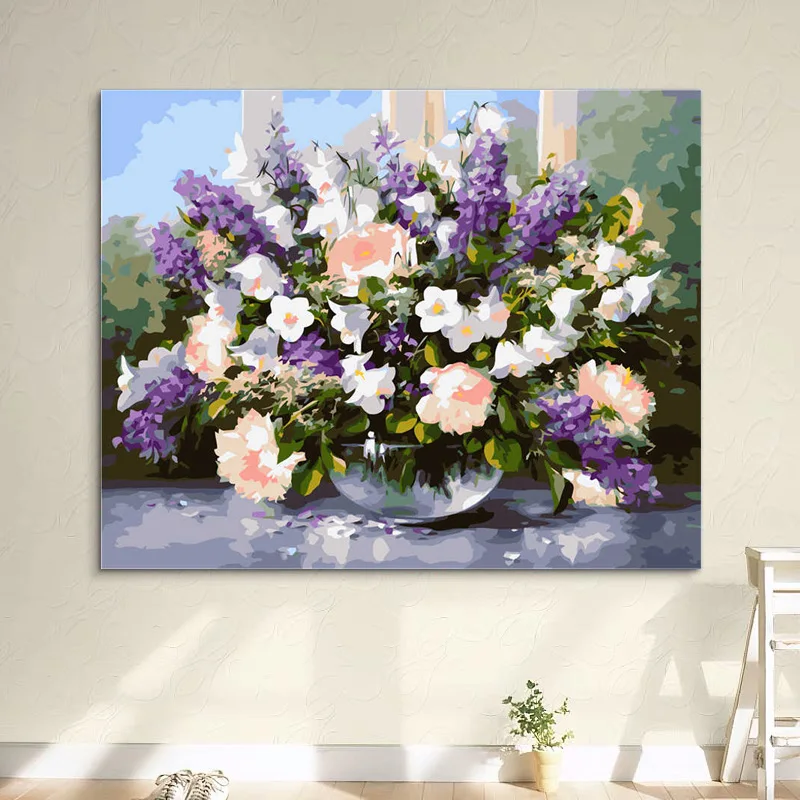 Раскраска по номерам "сделай сам", цветы, без рамы, картина по номе...