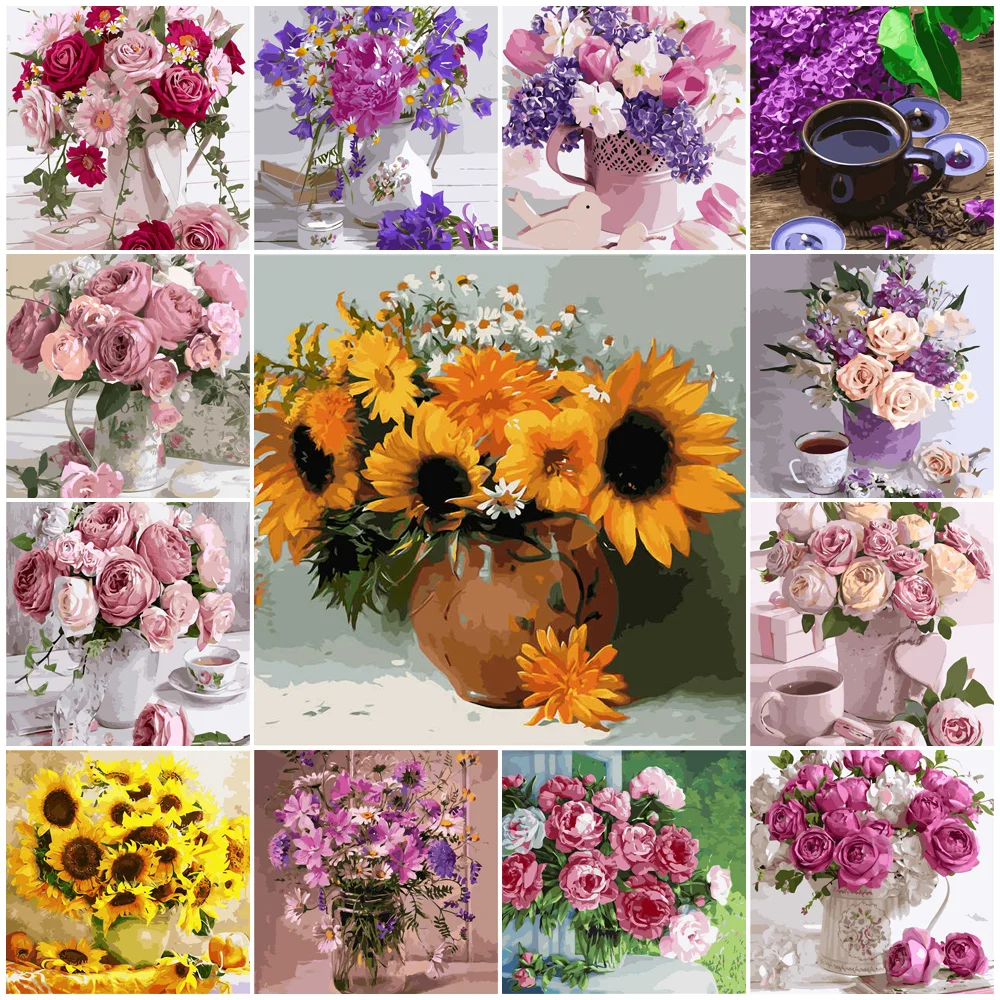 Картина маслом цветов, без рамки, 50x40 см, 28 цветов, рукоделие сд...