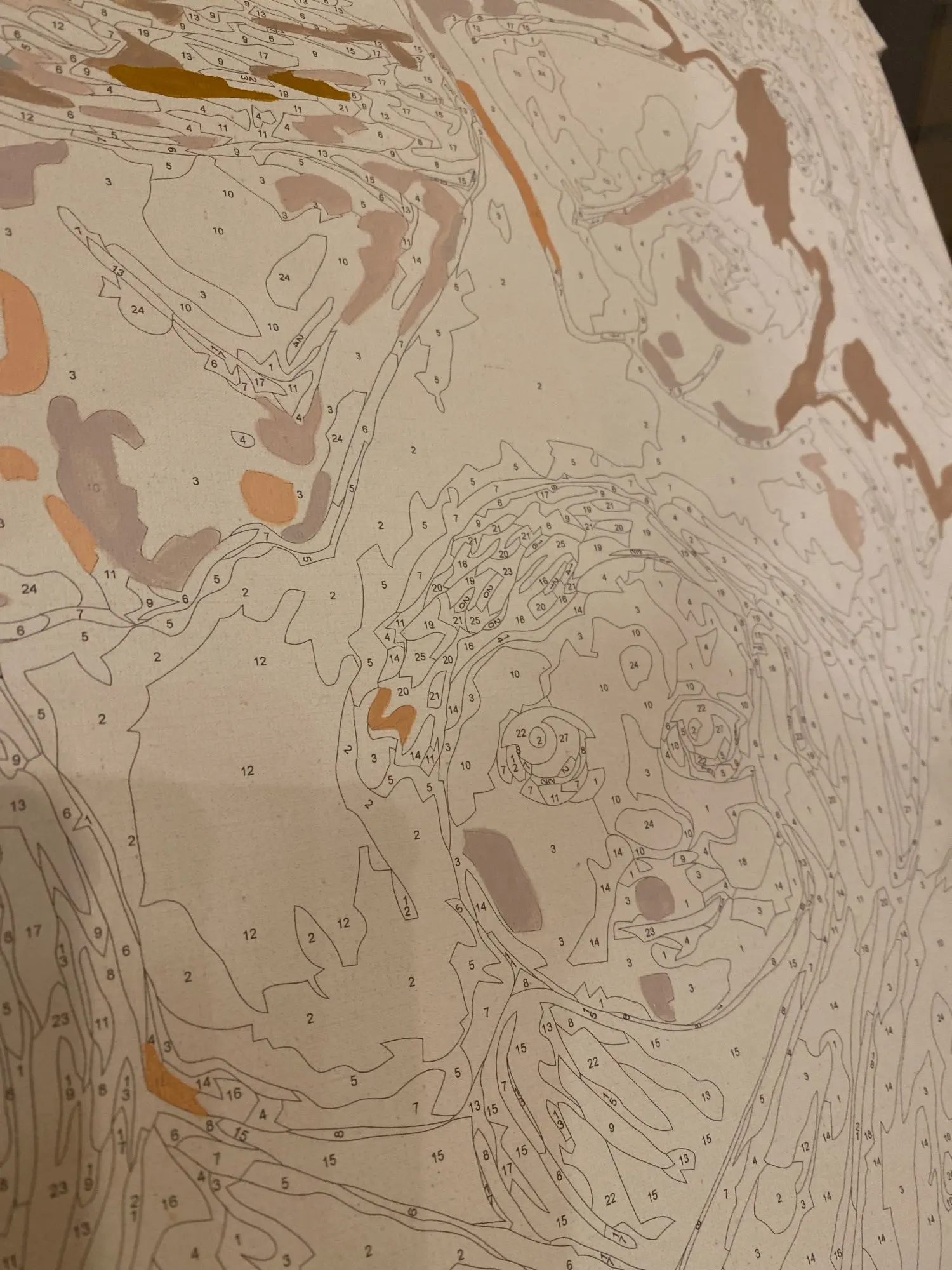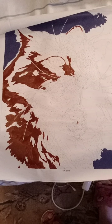Пришло все быстро, холст не помят, краски по цвету немного светлее, чем на фото, и немного видны линии, надо в 2 слоя покрывать, наверное.