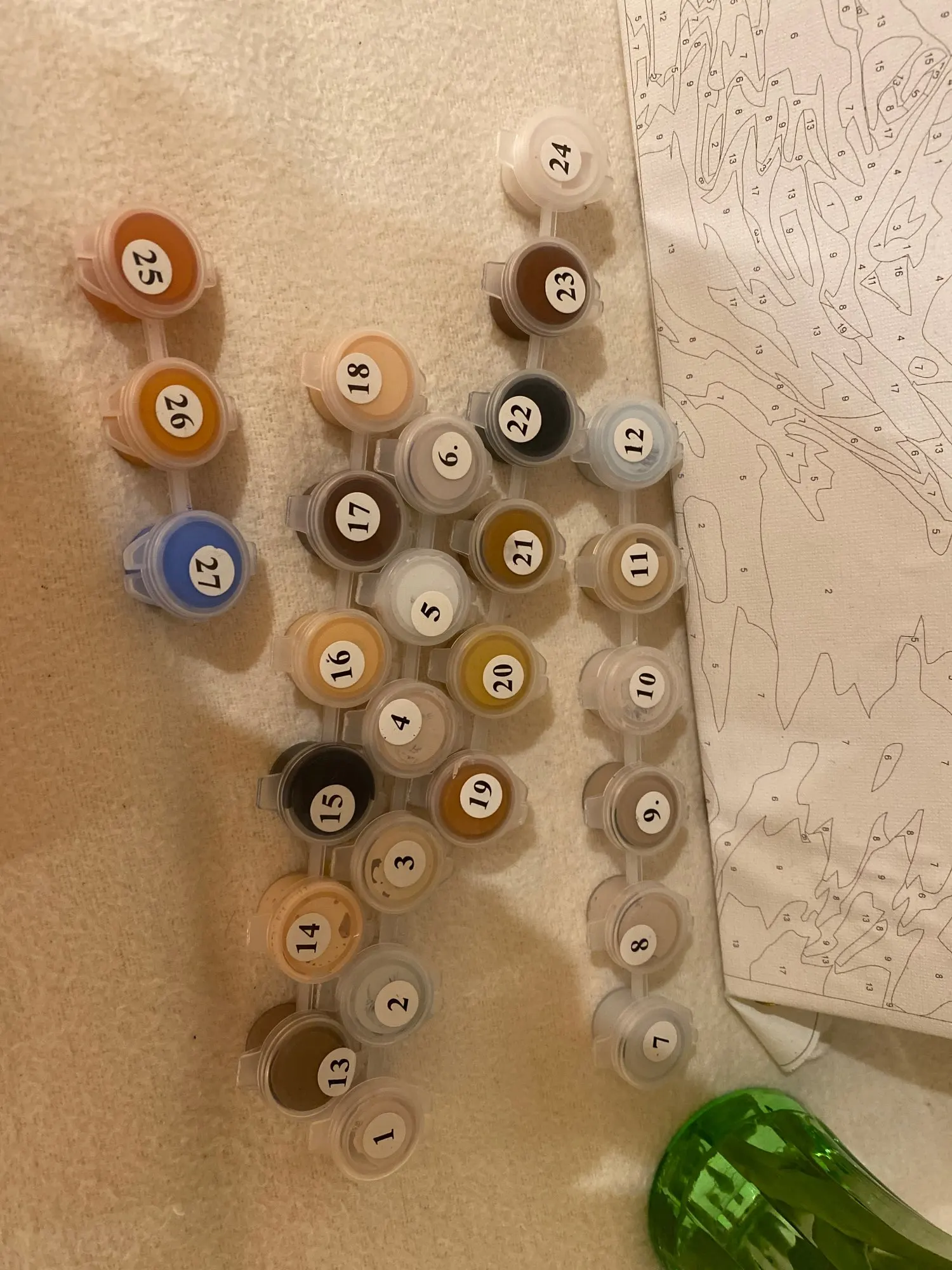 краски целы,четкие линии и хорошо видны цифры на полотне. в наборе 3 кисточки