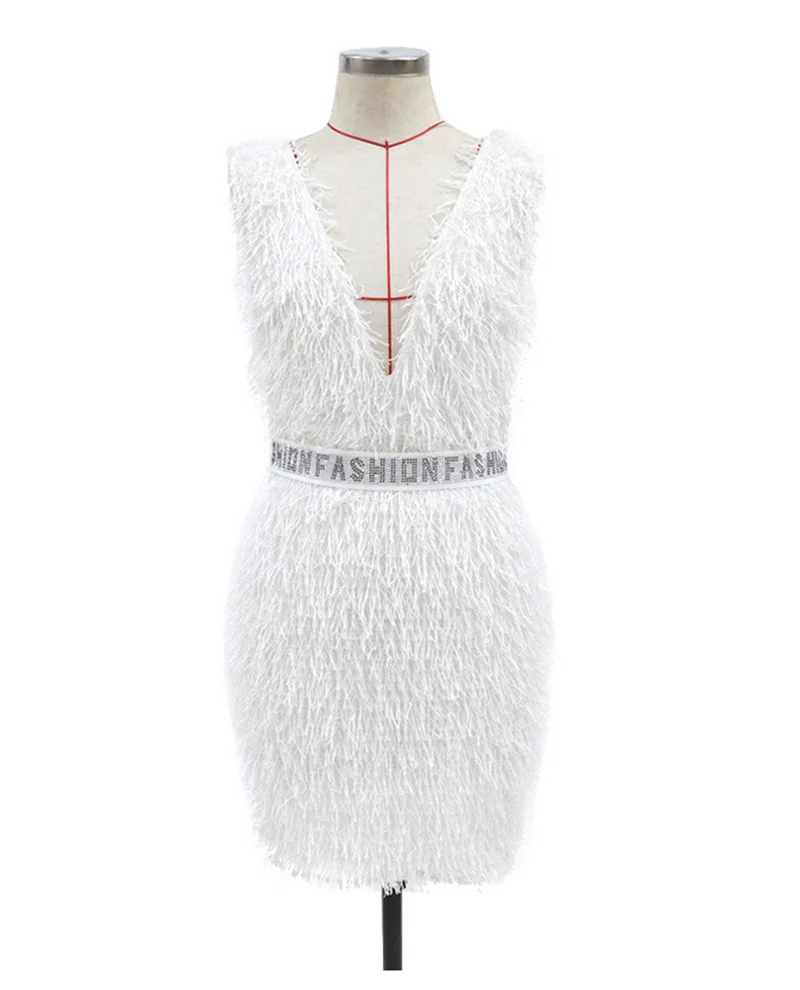 Белое вечернее модельное платье с бахромой в стиле знаменитостей, женское сексуальное Клубное платье с коротким рукавом и кисточками, короткое коктейльное платье
