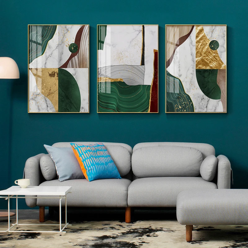 Абстрактная Золотая фольга, холст, художественные картины, Современный домашний декор, печатный зеленый геометрический постер, декор в скандинавском стиле для гостиной