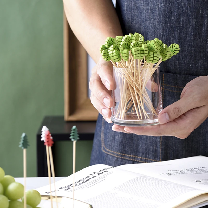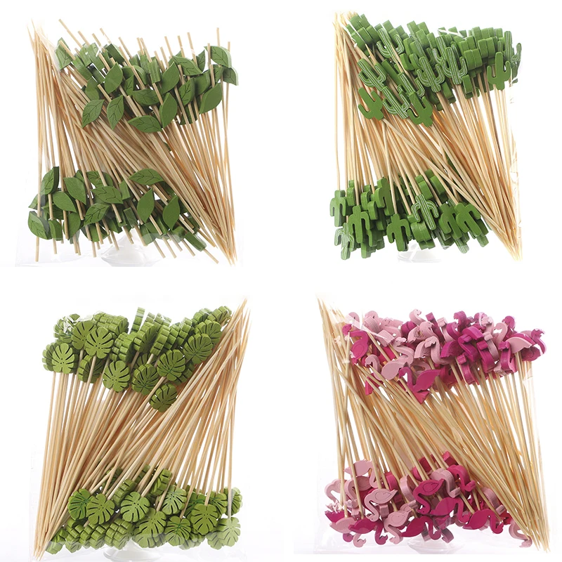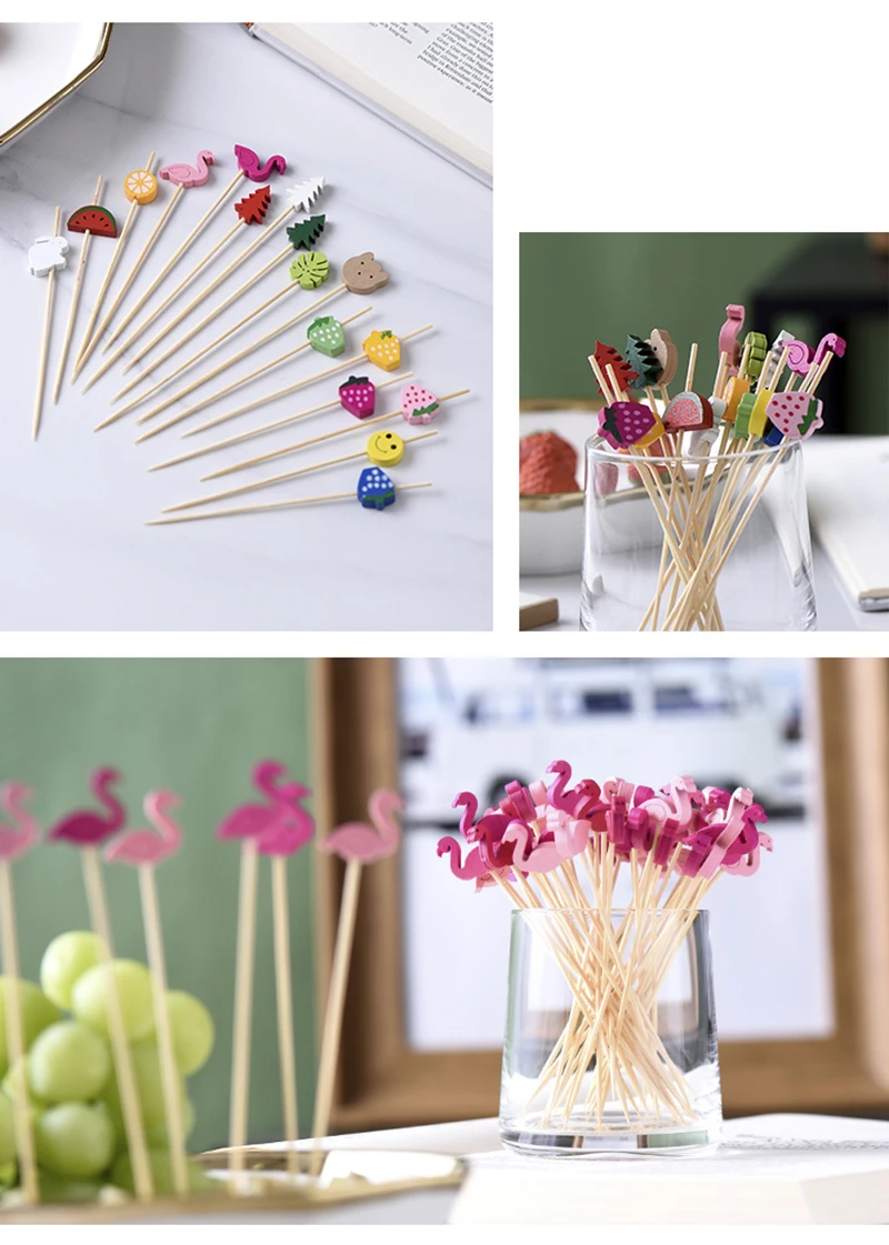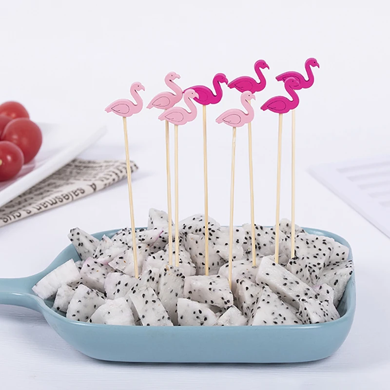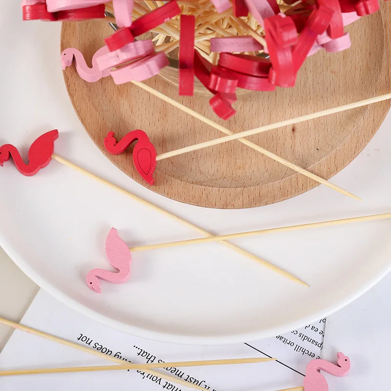 100PCS Декоративные Зубочистки Фламинго Рождественская Елка Коктейльные Палочки Бамбук Фрукты Шпажки Для Шведского Стола Свадебная Партия Еда Декор Аксессуары