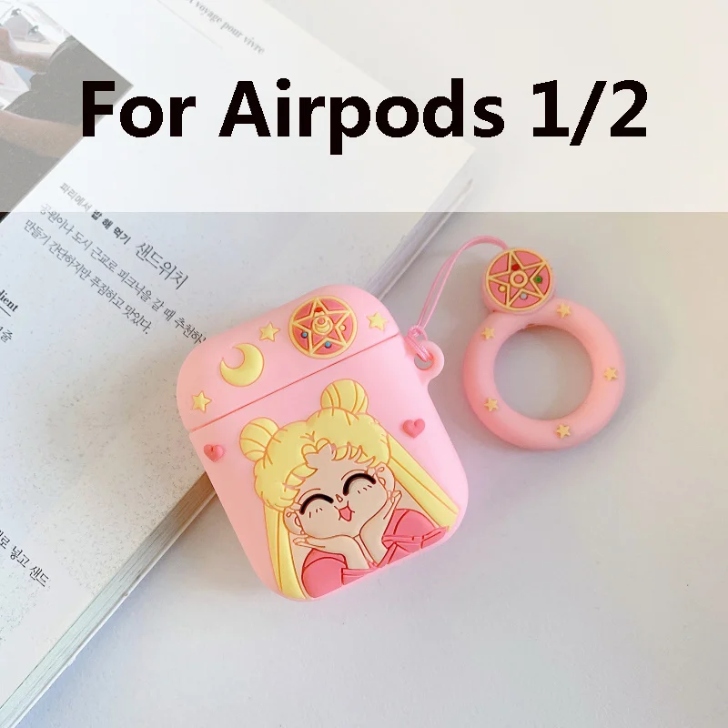 3D милый мультфильм Сейлор Мун Мягкий силиконовый чехол для Airpods 1/2 анти потерянный палец кольцо ремешок для наушников чехол для Air pod оптовая продажа