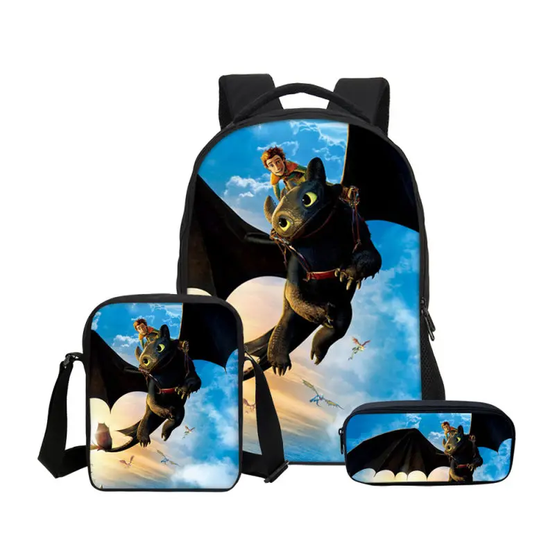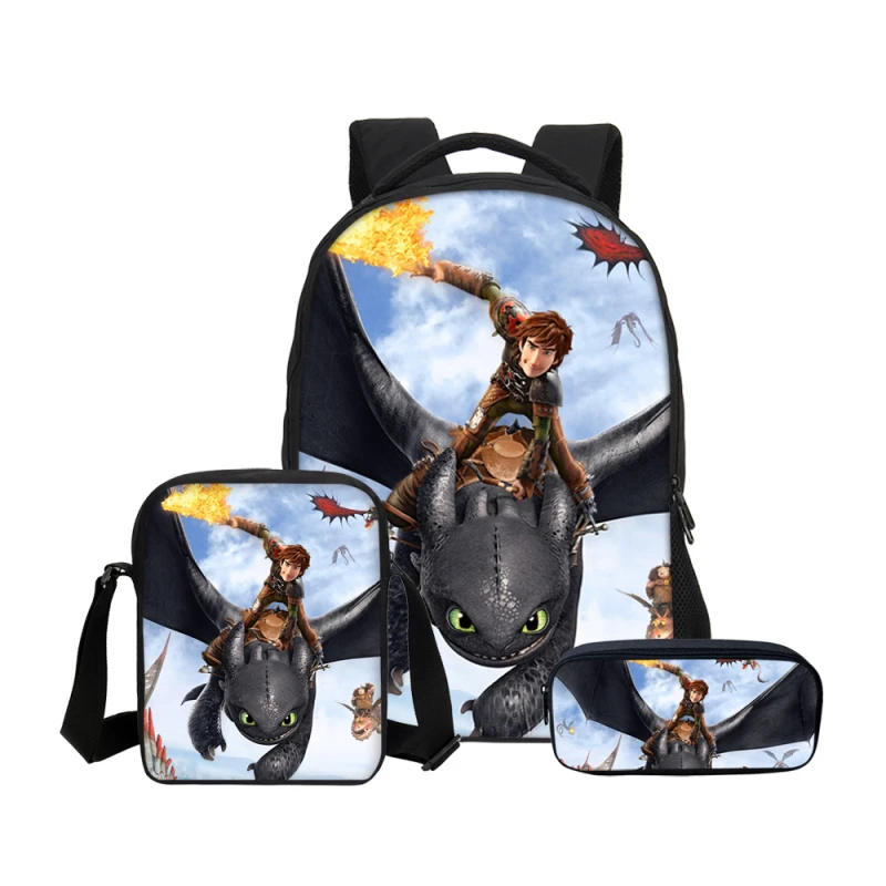 Рюкзаки для девочек, 16 дюймов3 шт., с 3D-принтом дракона, сумка для карандашей, портфель, школьные ранцы для мальчиков