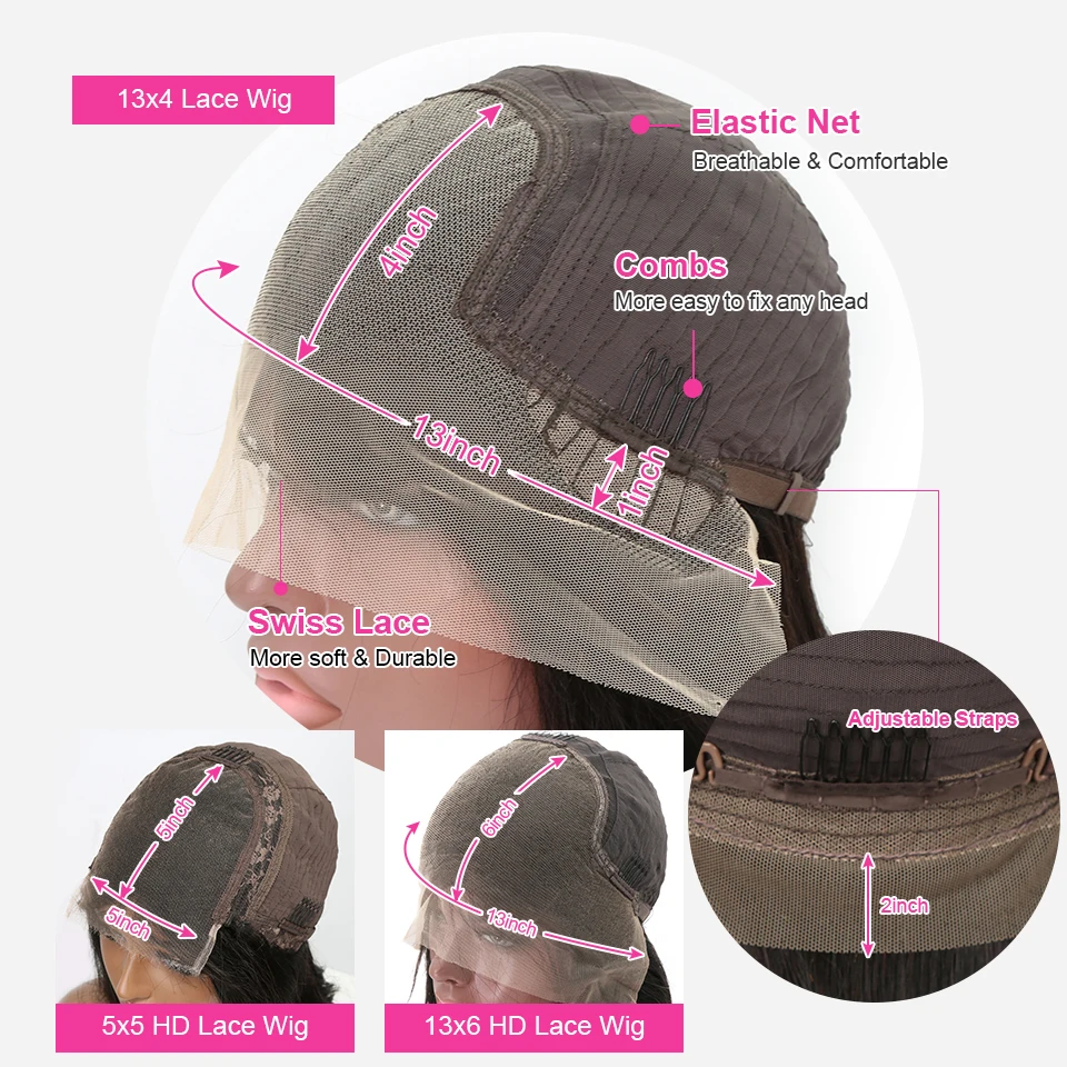 30 32 36 дюймов 13x4, парики из человеческих волос с глубокой круже...