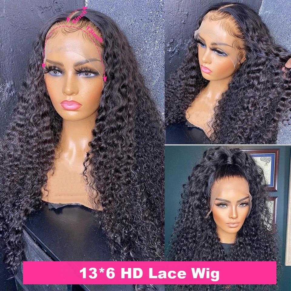 Cexxy глубокие кудрявые 13*4 HD кружевные передние парики из челове...