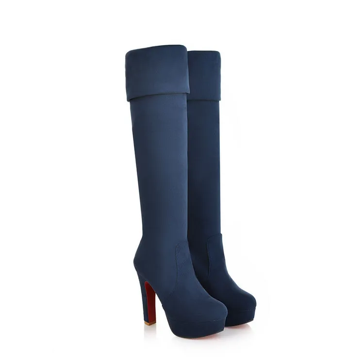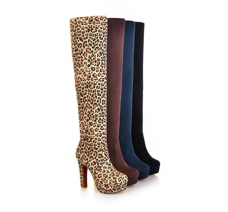 Женские сапоги выше колена, на платформе, на высоком каблуке, зимни...