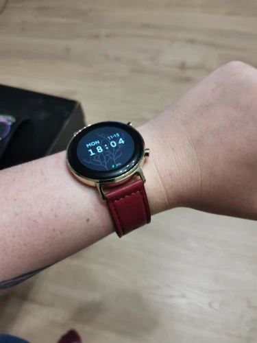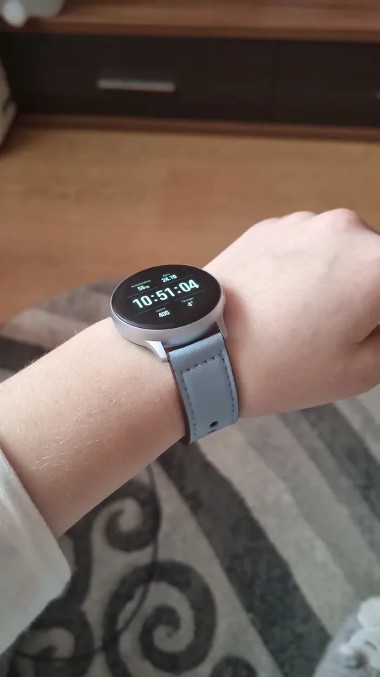 Приехал за 3 недели. На Active 2 стал нормально. Достаточно мягкий, из двух полосок какого-то кожзама с каким-то пенистым материалом между ними, заторцованных то ли пластиком, то ли силиконом. Шляпке явно не хватает диаметра или дырочки великоваты - нужно приловчиться при застегивании - вылетает - не так легко, как с силиконовым. Часы сидят вроде нормально, не похоже, что слетят, если зацепить.