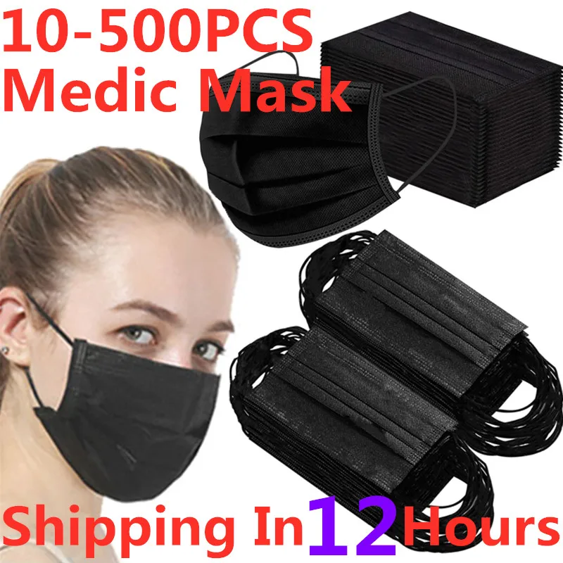 10-200 шт., одноразовые черные медицинские маски с фильтром