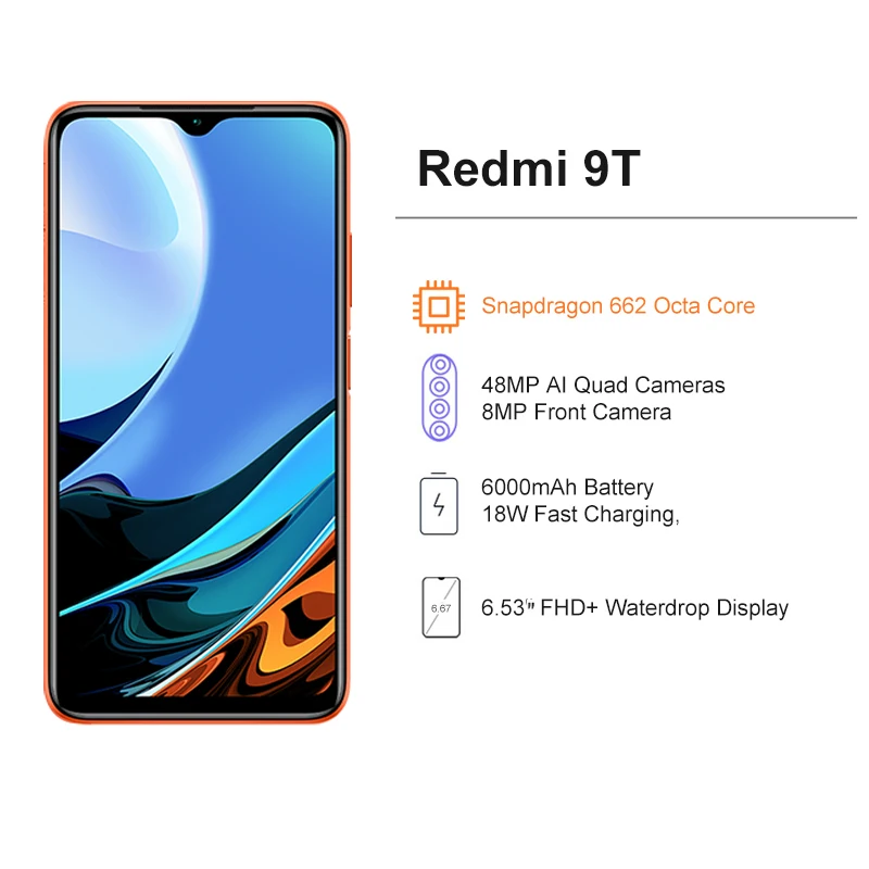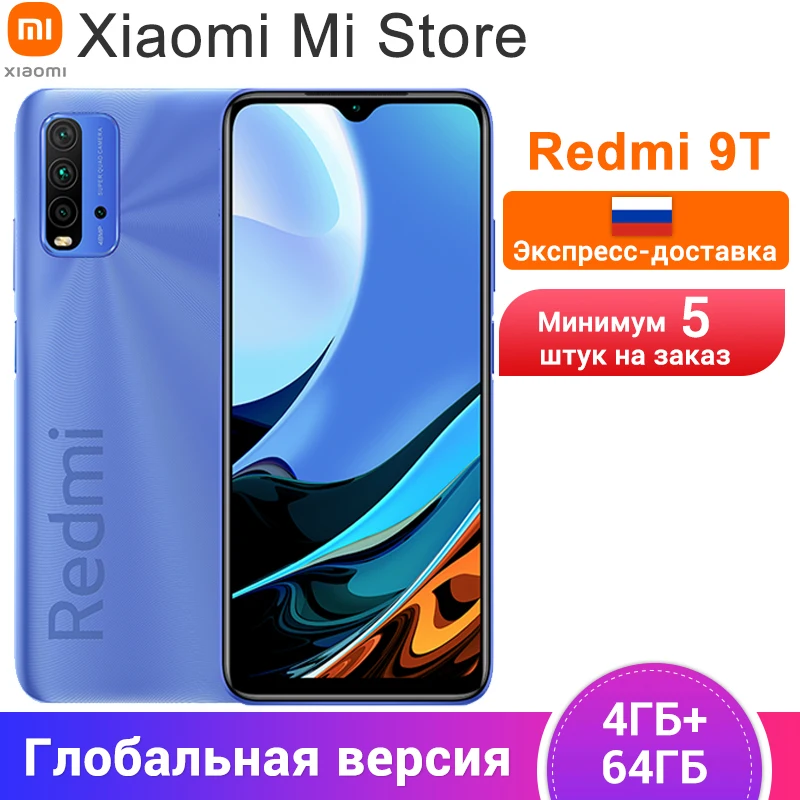 5 шт., Смартфон Xiaomi Redmi 9T, 4 Гб ОЗУ 64 Гб ПЗУ, Восьмиядерный процессор Snapdragon 662, Аккумулятор 6000 мАч