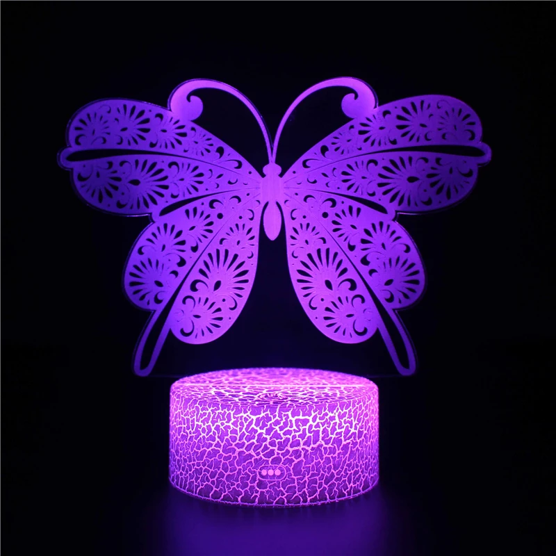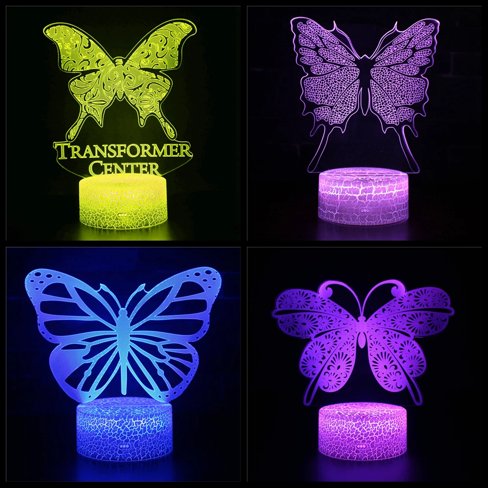 3D ночсветильник в виде красивой бабочки с насекомыми, 7 цветов, женский подарок с дистанционным управлением, настольное украшение для пары, светодиодная настольная лампа