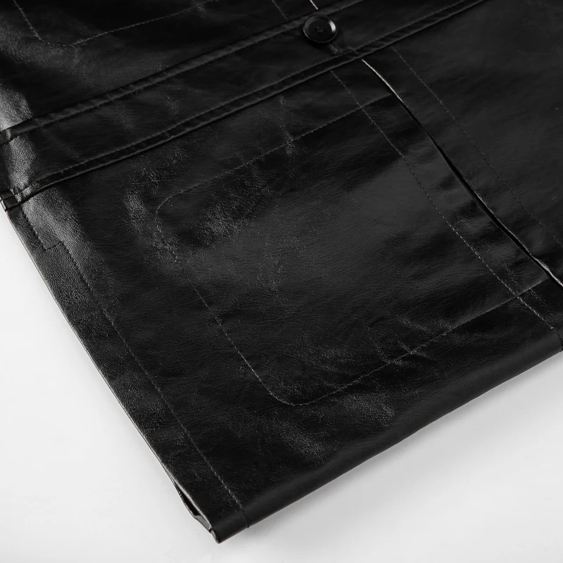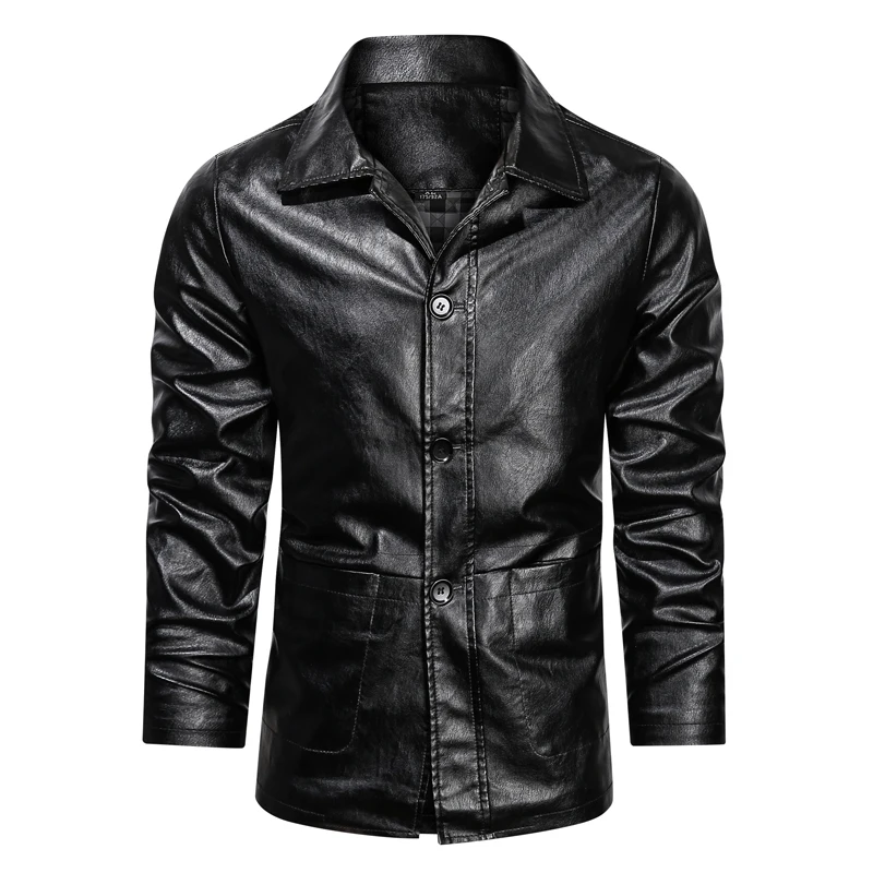 Мужской однобортный кожаный Тренч AIOPESON, повседневная однотонная...