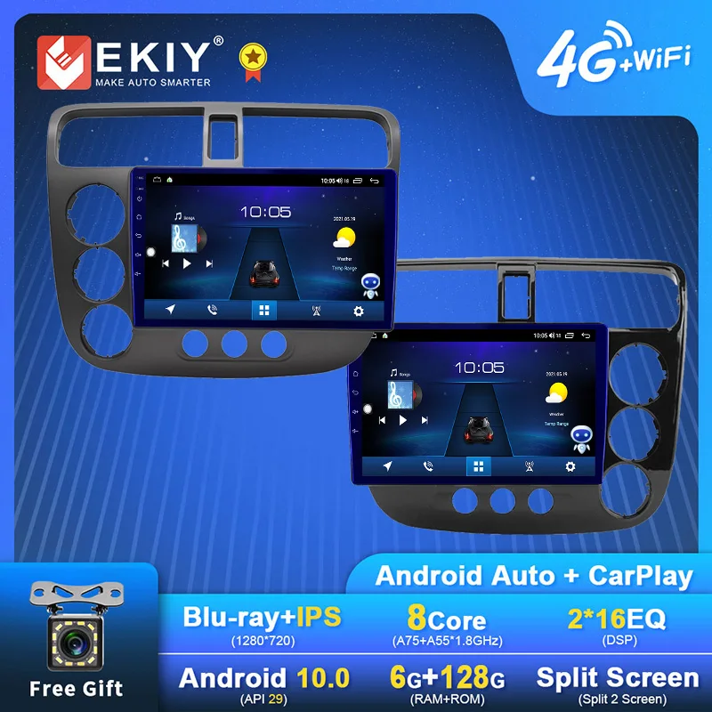 EKIY Android Car Radio For Honda Civic 7 LHD RHD 2000 - 2006 Navi GPS 1280*720 IPS DSP Carplay Multimedia Player Auto Stereo DVD