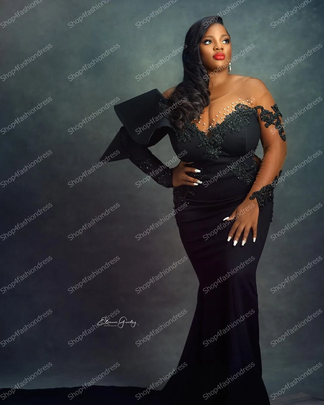 Винтажное черное атласное вечернее платье с юбкой-годе Aso Ebi, роскошное платье для официальной вечеринки в африканском стиле с бисером и кристаллами, полная яркость